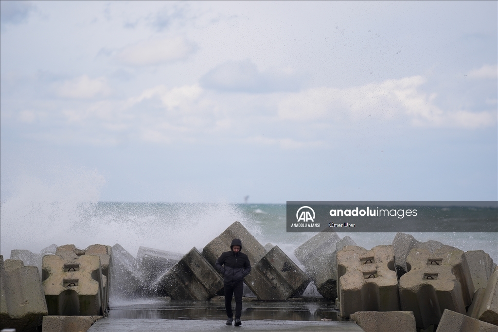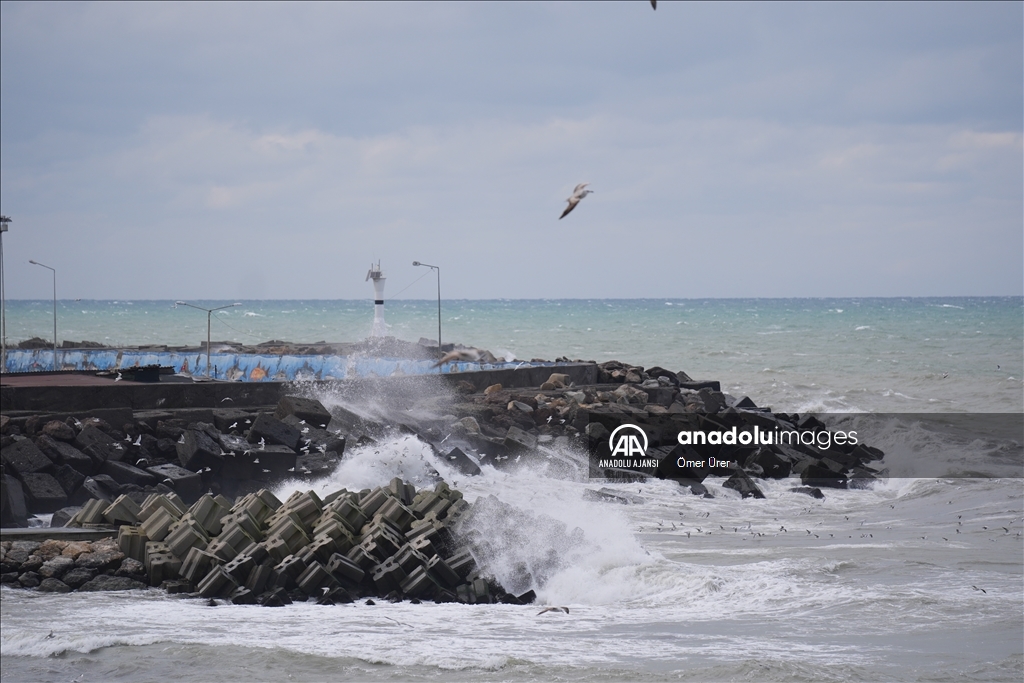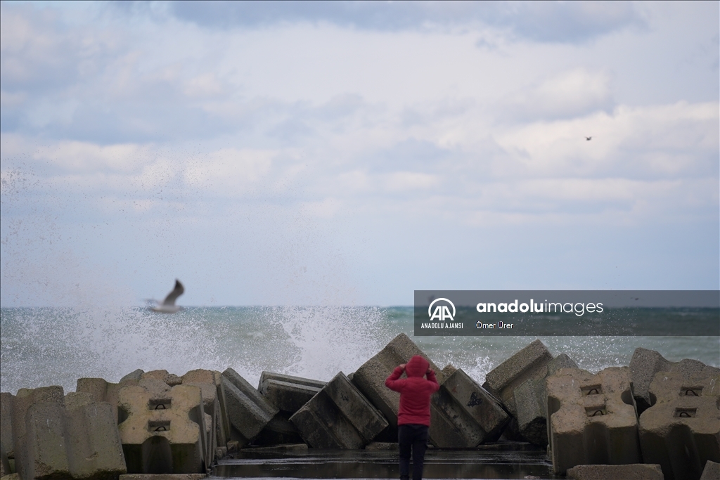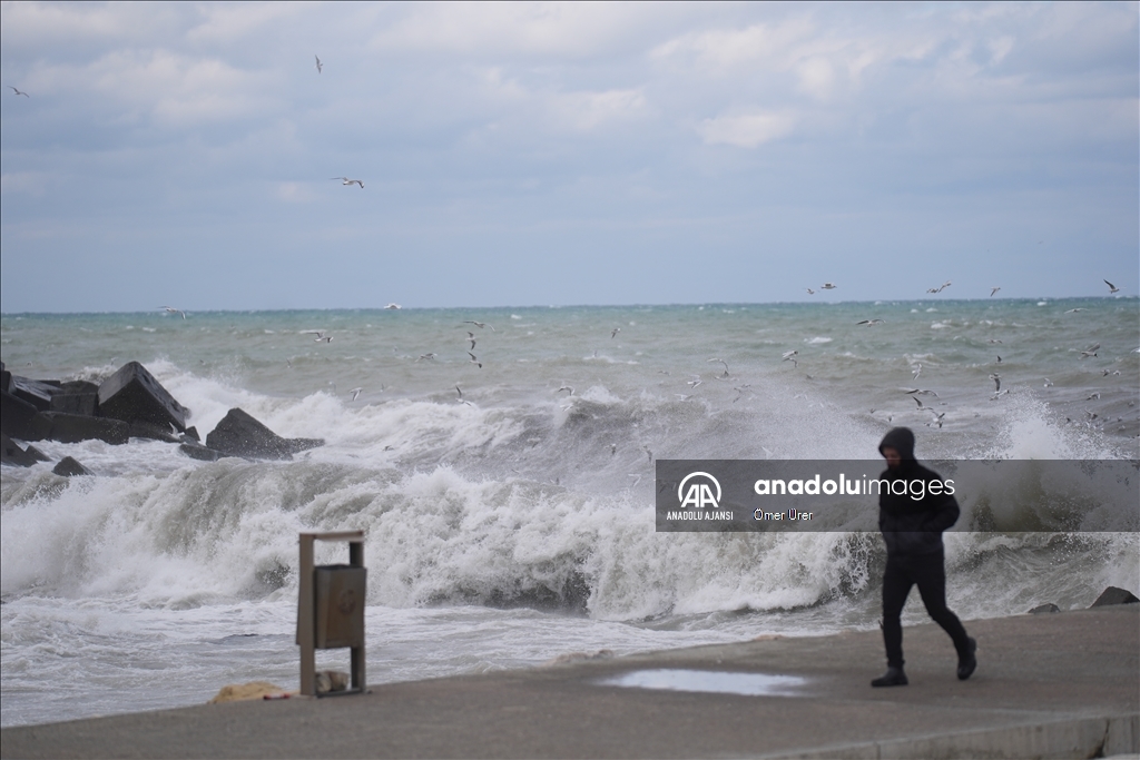 Düzce'nin Akçakoca ilçelerinde şiddetli rüzgar hayatı olumsuz etkiledi. Kuvvetli rüzgar nedeniyle denizde dalga boyu yükseldi. (Ömer Ürer - Anadolu Ajansı)Ömer Ürer
