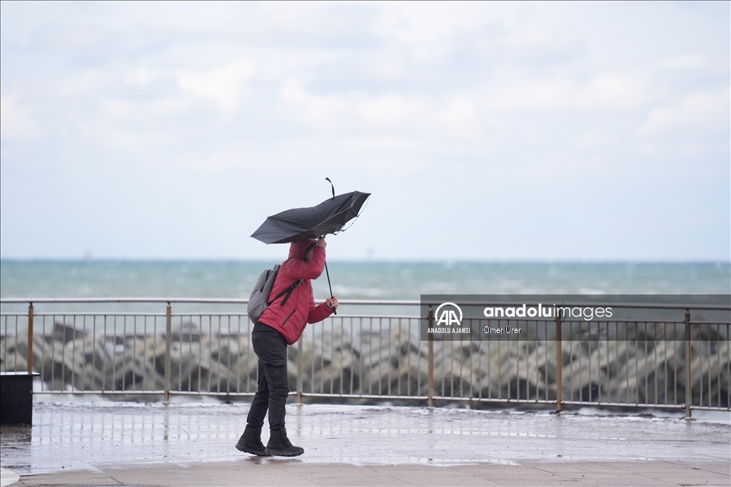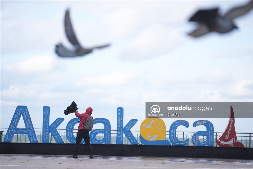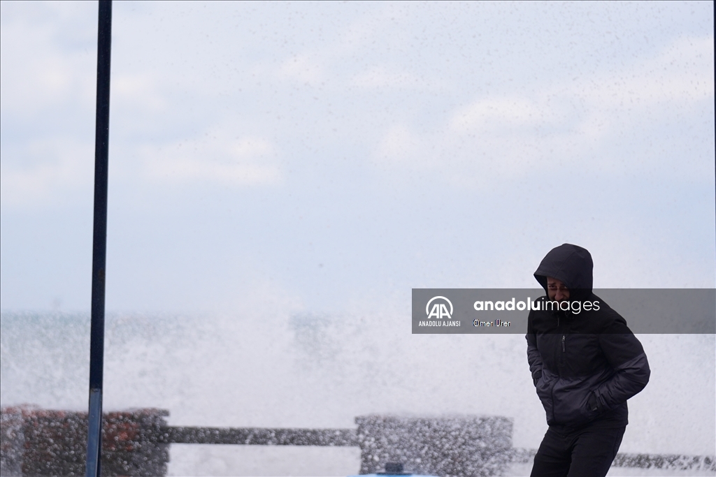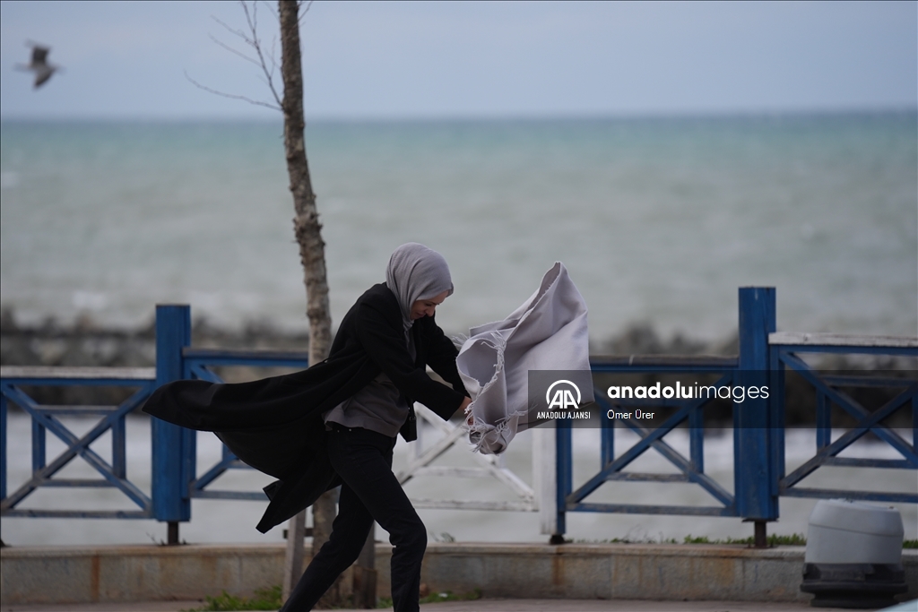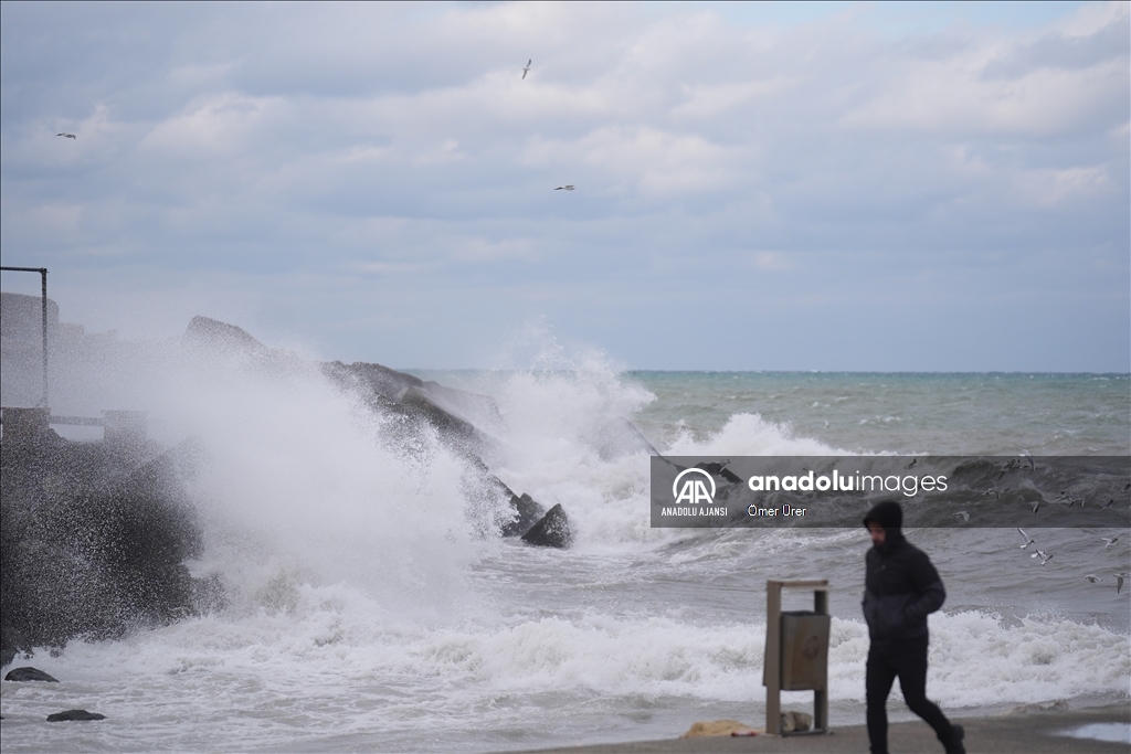 Düzce'nin Akçakoca ilçelerinde şiddetli rüzgar hayatı olumsuz etkiledi. Kuvvetli rüzgar nedeniyle denizde dalga boyu yükseldi. (Ömer Ürer - Anadolu Ajansı)Ömer Ürer