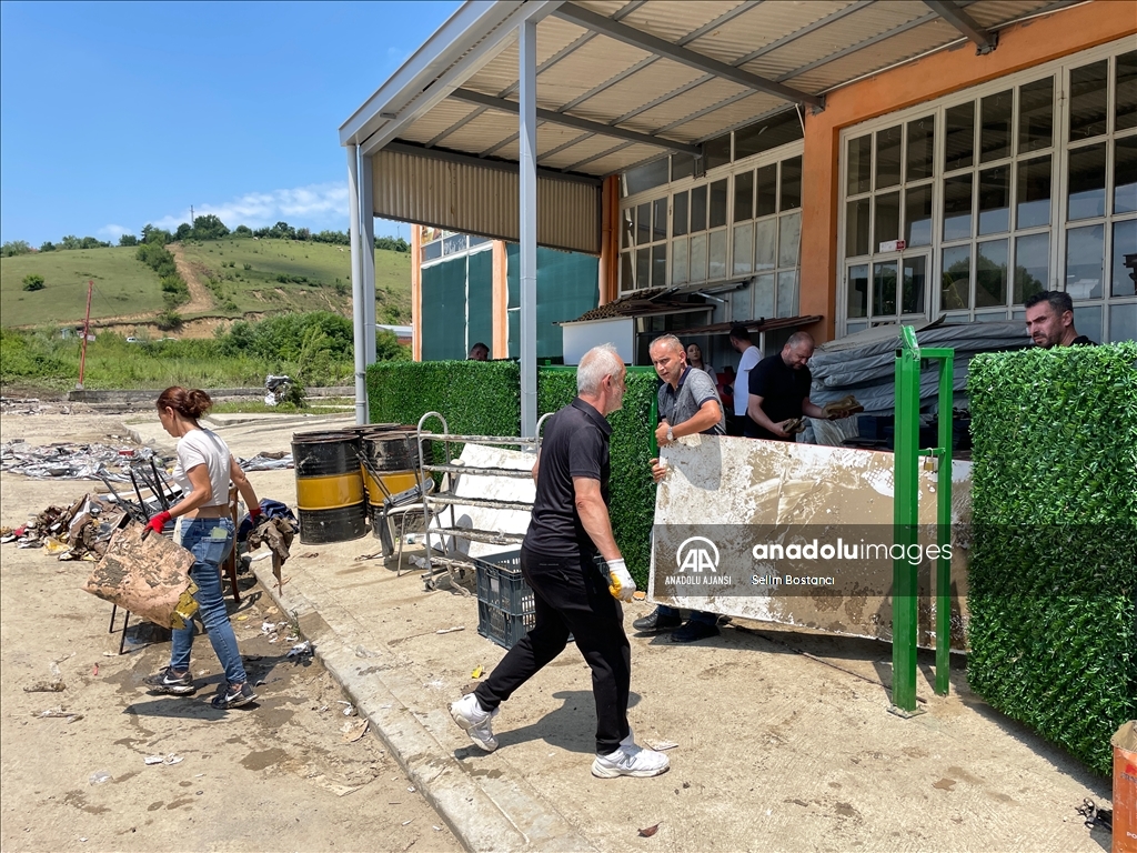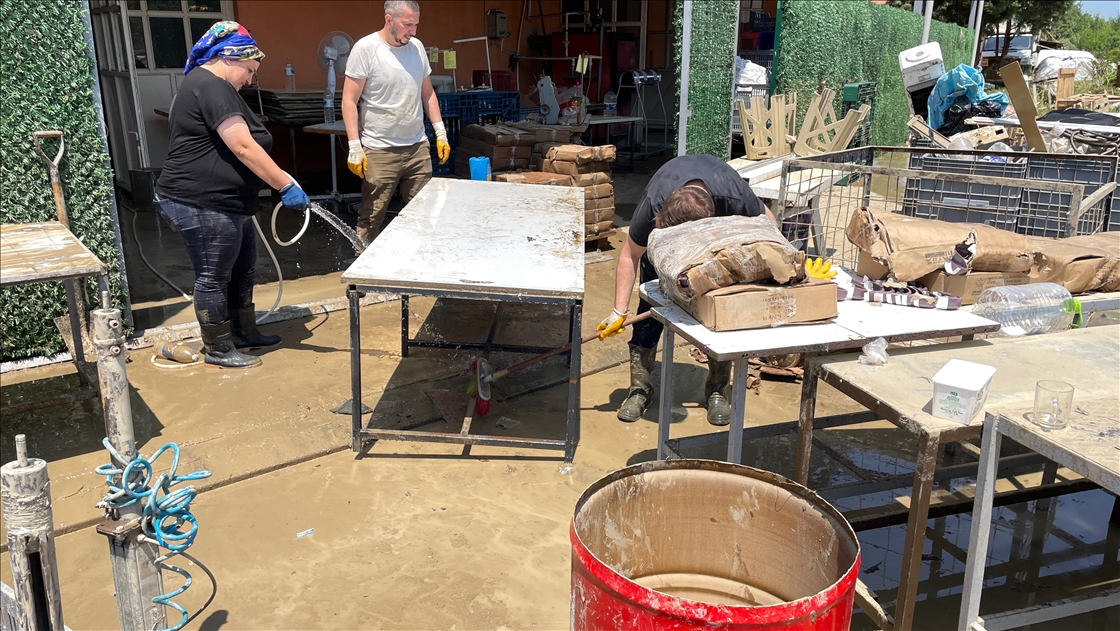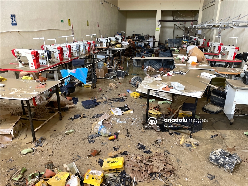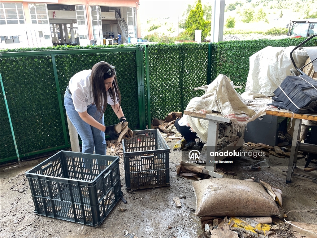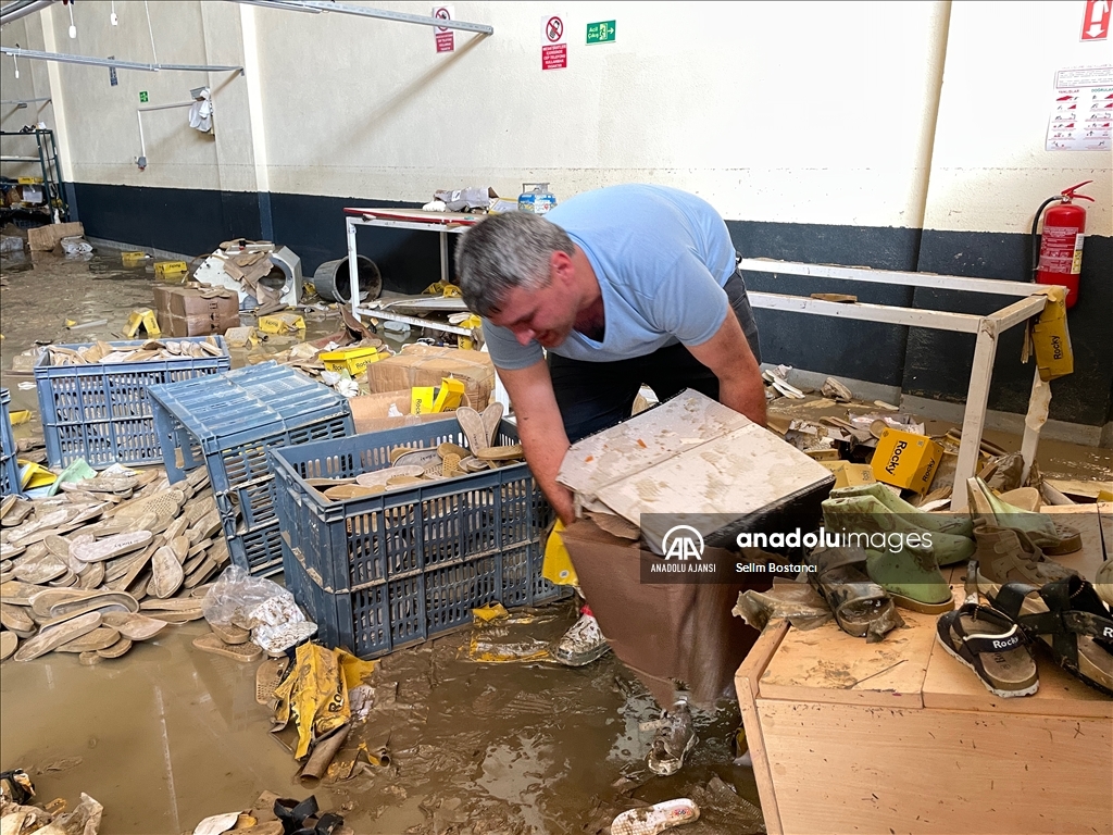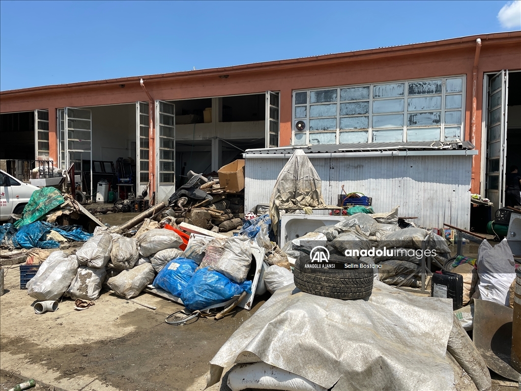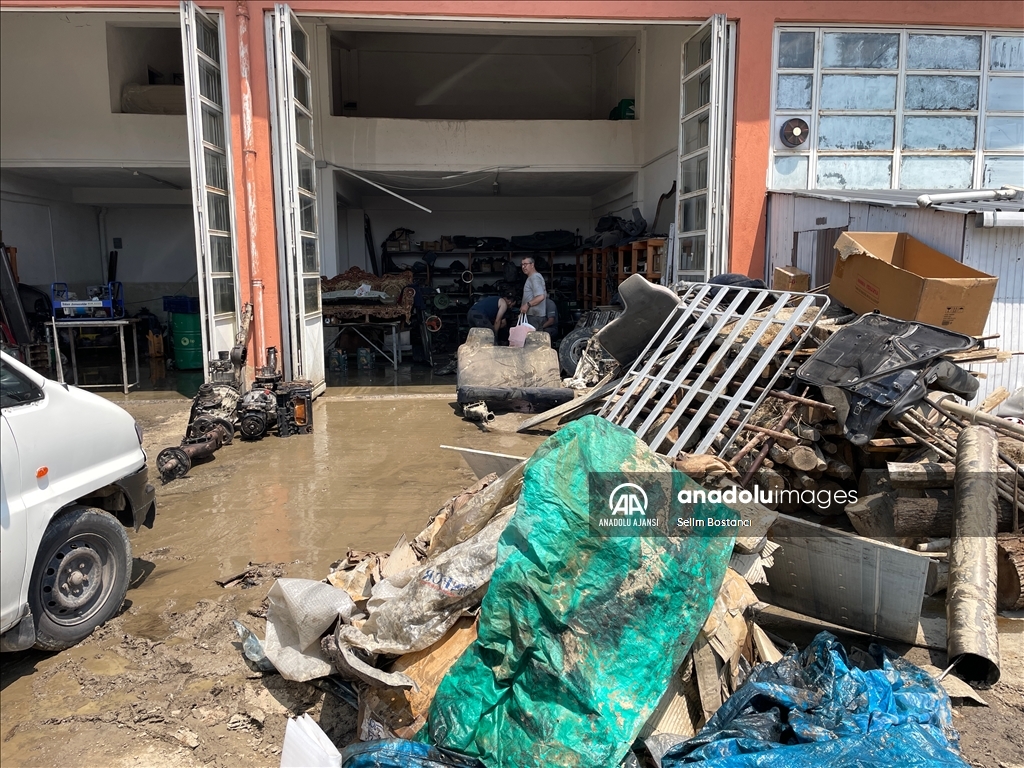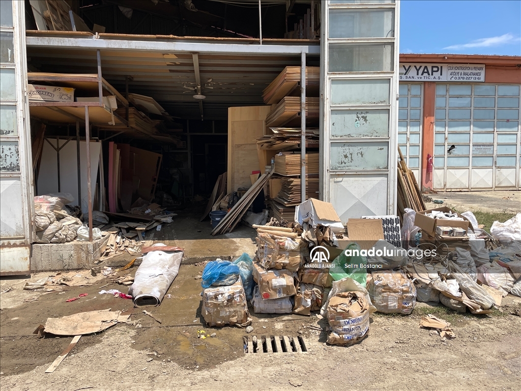 Bartın'da sağanak nedeniyle Bartın Irmağı ile derelerin taşması sonucu zarar gören ev ve iş yerlerinde hasar tespit çalışması yapılıyor. İki gün önce etkili olan sağanak nedeniyle balçık altında kalan çeşitli imalat, atölye, üretim işletmelerinin bulunduğu Gecen köyü mevkisindeki Atılım Sanayi Sitesi'nde iş yeri sahipleri ile çalışanlar temizliğe başladı. ( Selim Bostancı - Anadolu Ajansı )Selim Bostancı