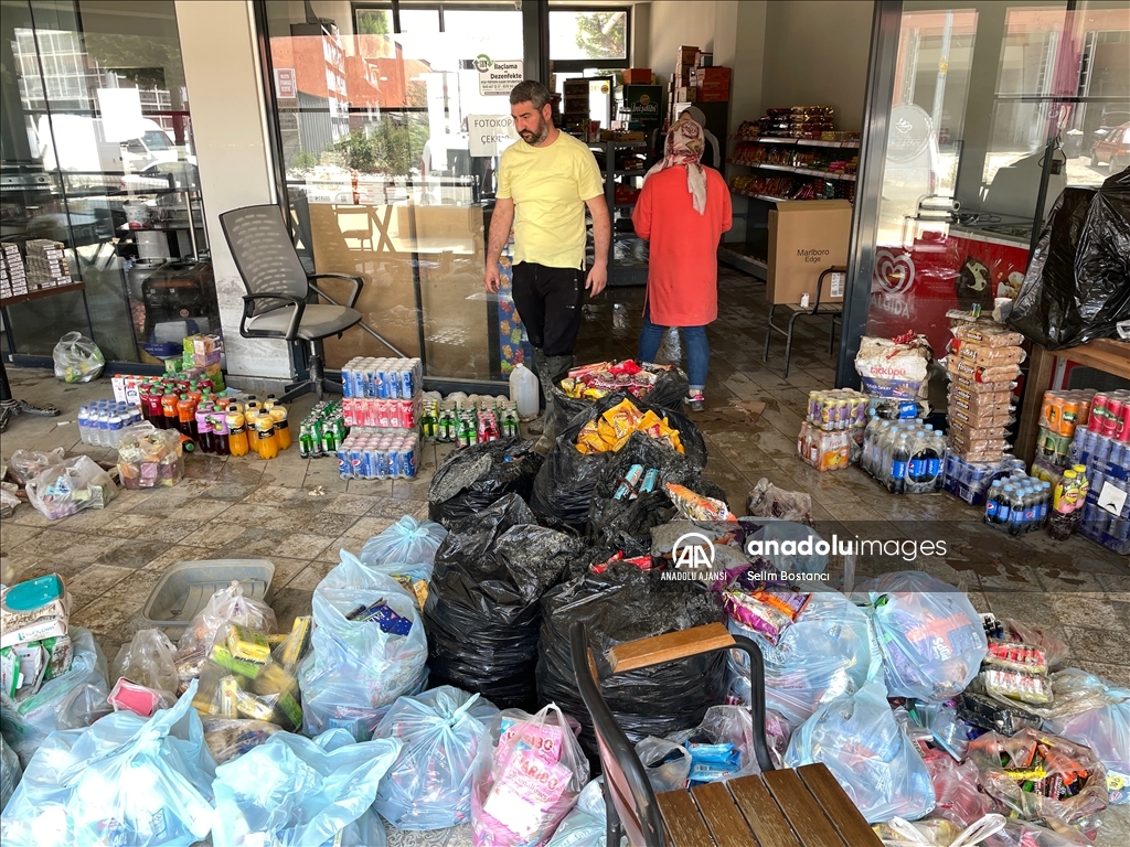 Bartın'da sağanak nedeniyle Bartın Irmağı ile derelerin taşması sonucu zarar gören ev ve iş yerlerinde hasar tespit çalışması yapılıyor.