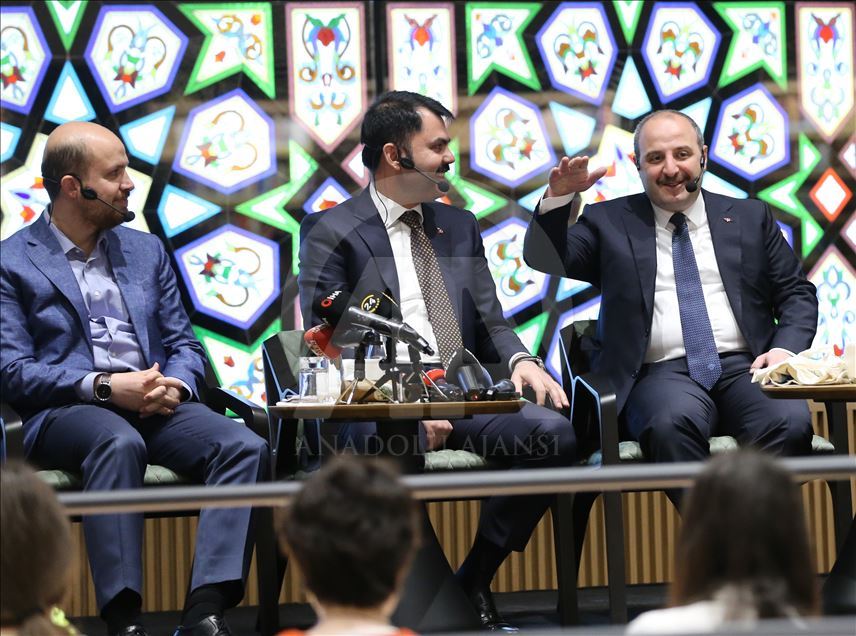 Başakşehir Millet Bahçesi içinde kurulan ve İstanbul'un en büyüğü olma özelliği taşıyan Başakşehir Millet Kıraathanesi açıldı. Açılışın ardından Çevre ve Şehircilik Bakanı Murat Kurum (ortada), Sanayi ve Teknoloji Bakanı Mustafa Varank (sağda) ile Türkiye Gençlik Vakfı (TÜGVA) Yüksek İstişare Kurulu Üyesi Bilal Erdoğan (solda), gençlerle söyleşiye katıldı. ( Yasin Aras - Anadolu Ajansı )Yasin Aras
