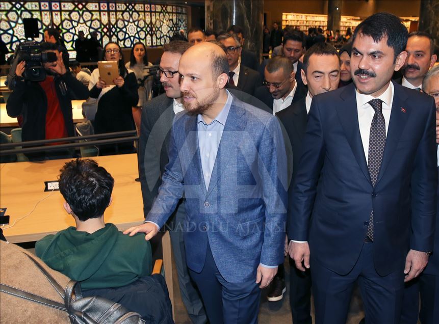 Başakşehir Millet Bahçesi içinde kurulan ve İstanbul'un en büyüğü olma özelliği taşıyan Başakşehir Millet Kıraathanesi açıldı. Açılışa katılan Çevre ve Şehircilik Bakanı Murat Kurum (sağ 2) ile Türkiye Gençlik Vakfı (TÜGVA) Yüksek İstişare Kurulu Üyesi Bilal Erdoğan (sağ 3), programın ardından gençlerle söyleşiye katıldı. ( Yasin Aras - Anadolu Ajansı )Yasin Aras