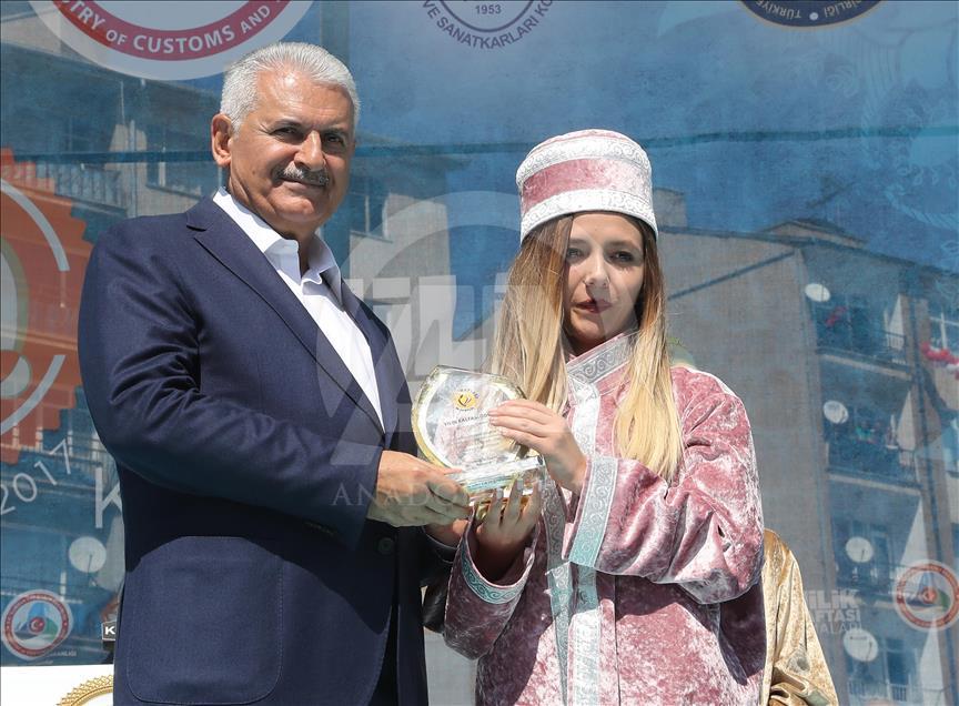 Başbakan Binali Yıldırım, 30. Ahilik Haftası Kutlama Programı'na katılmak üzere geldiği Kırşehir'de Cacabey Meydanı'nda düzenlenen törene katıldı. Başbakan Yıldırım, Yılın kalfası ödülünü Miray Çakmak'a verdi. ( Başbakanlık / Mustafa Aktaş - Anadolu Ajansı )Başbakanlık / Mustafa Aktaş