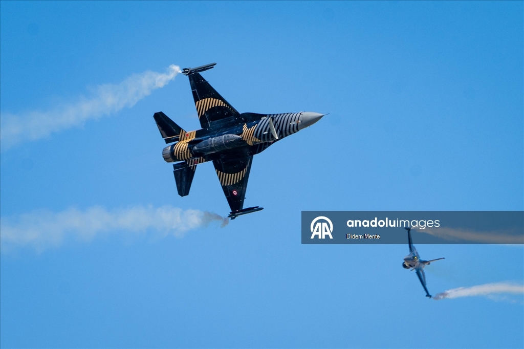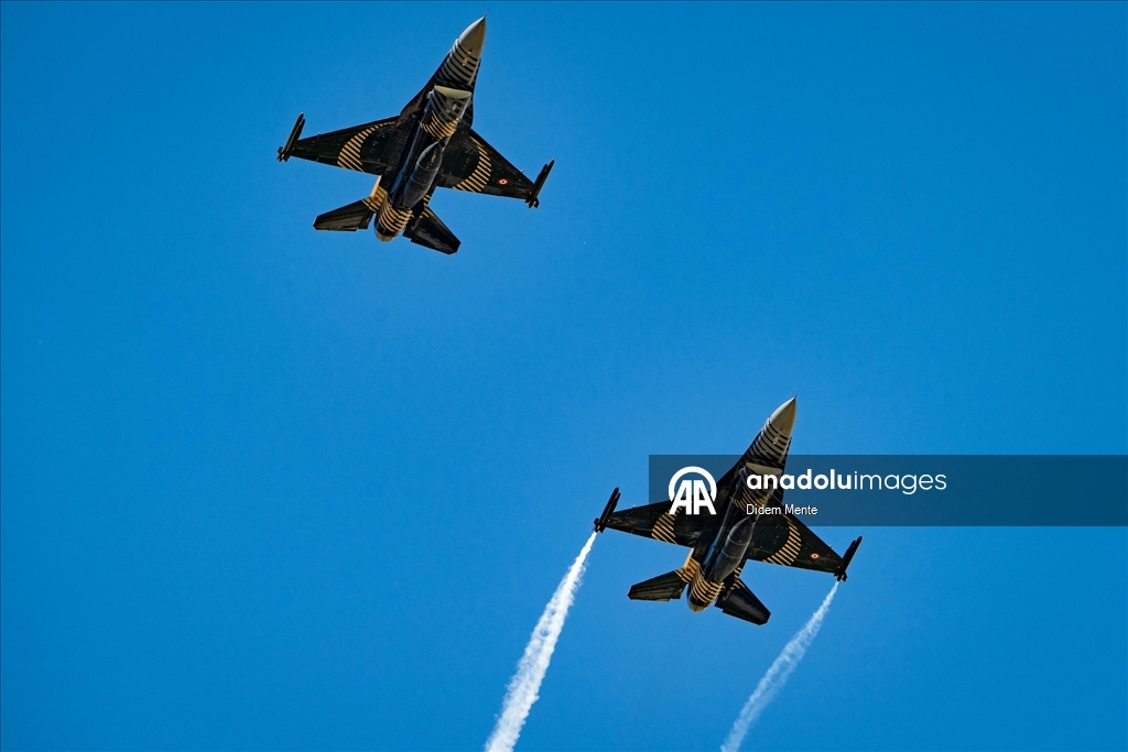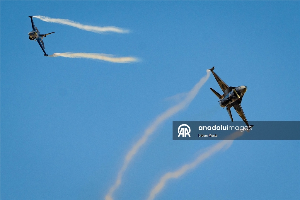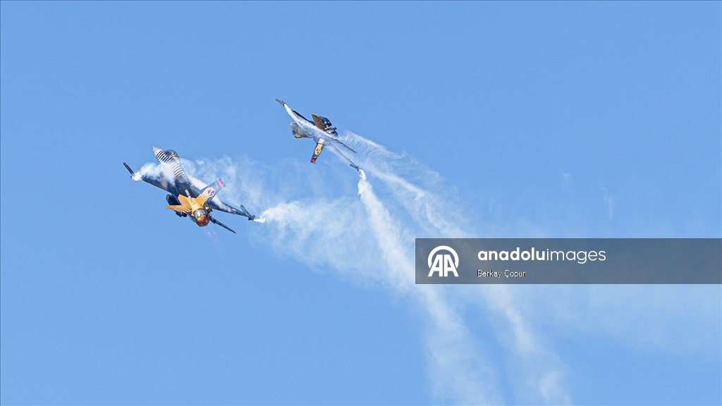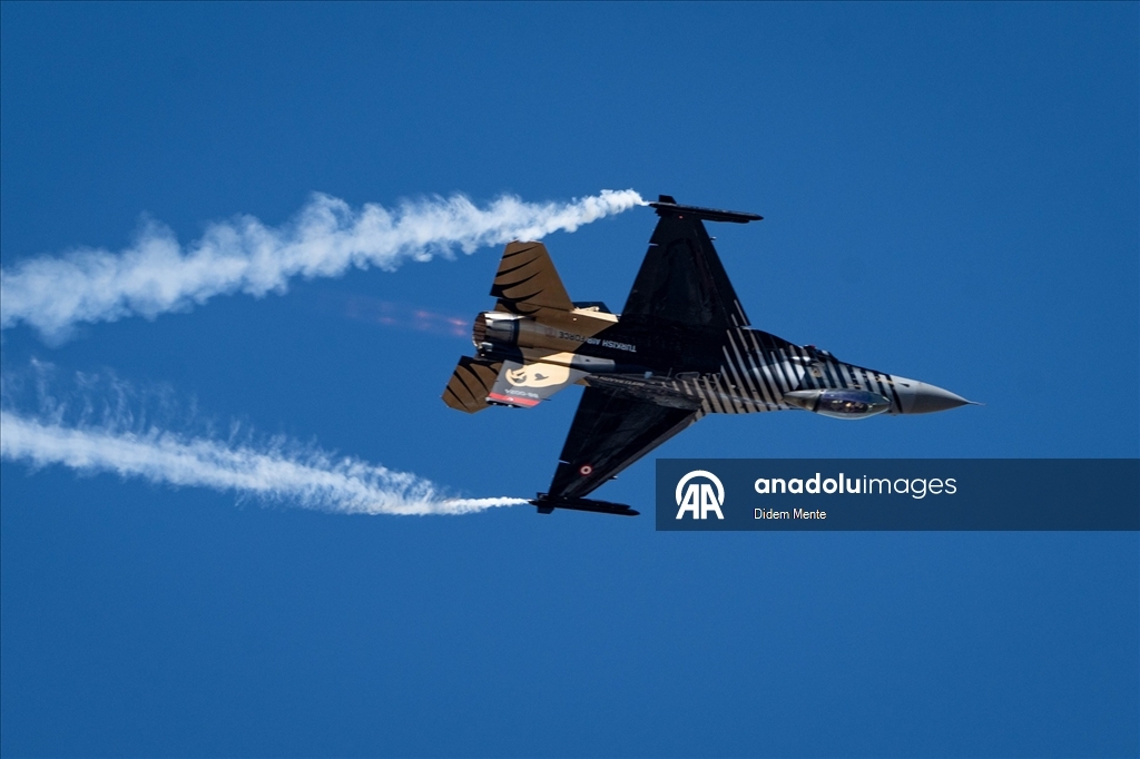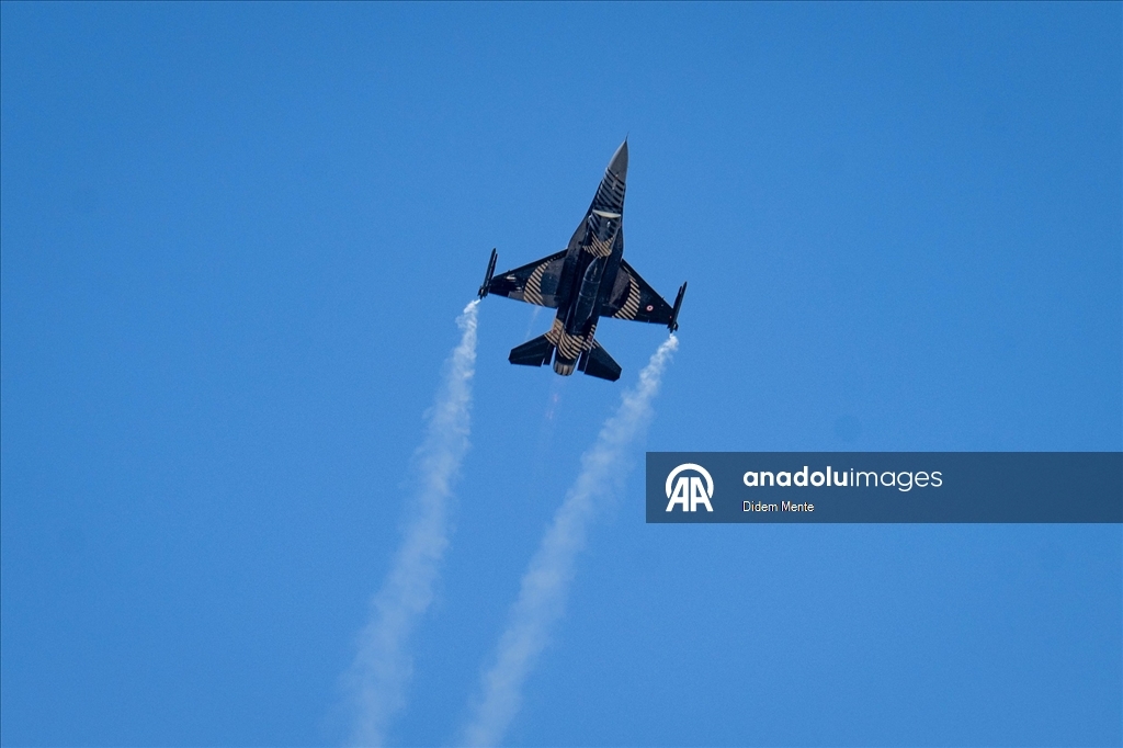 Türk Hava Kuvvetleri'nin akrobasi timi SOLOTÜRK, 30 Ağustos Zafer Bayramı kutlamaları için yapacağı gösteri öncesi, Ankara semalarında çevre tanıma ve prova uçuşu gerçekleştirdi.