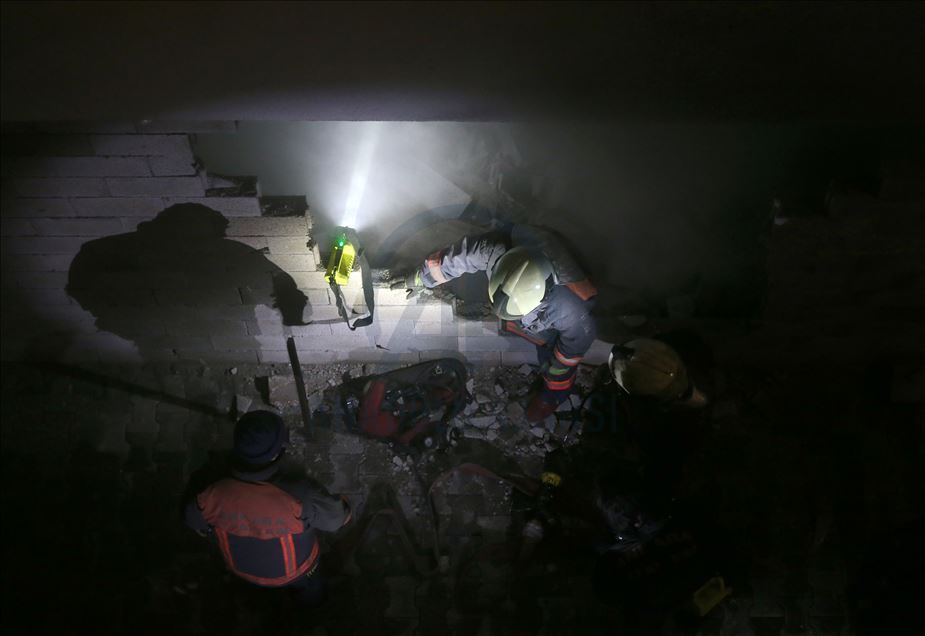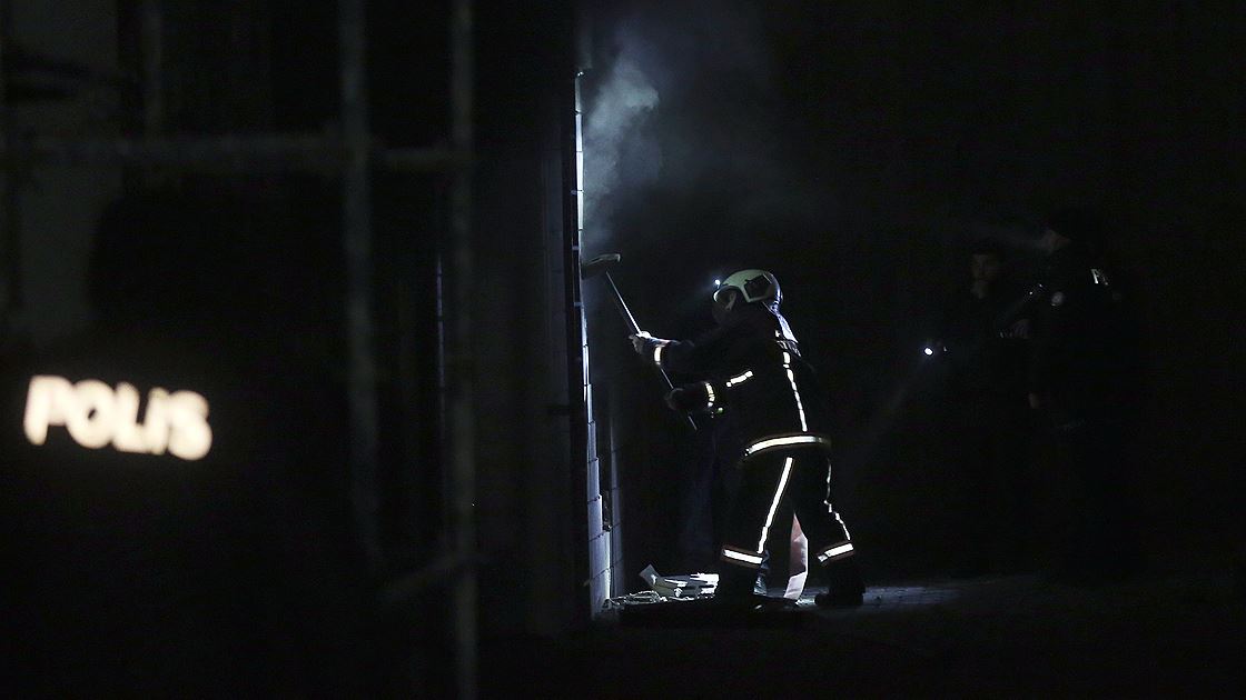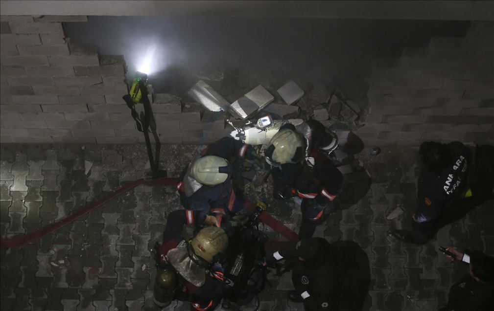 Ankara'nın Altındağ ilçesinde 13 katlı bir binanın kapalı otopark kısmında yangın çıktı. İtfaiye ekiplerinin binanın duvarını yıkarak müdahalede bulunduğu yangında otoparktaki 2 araç kullanılamaz hale geldi. ( Evrim Aydın - Anadolu Ajansı )Evrim Aydın