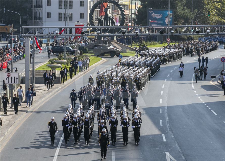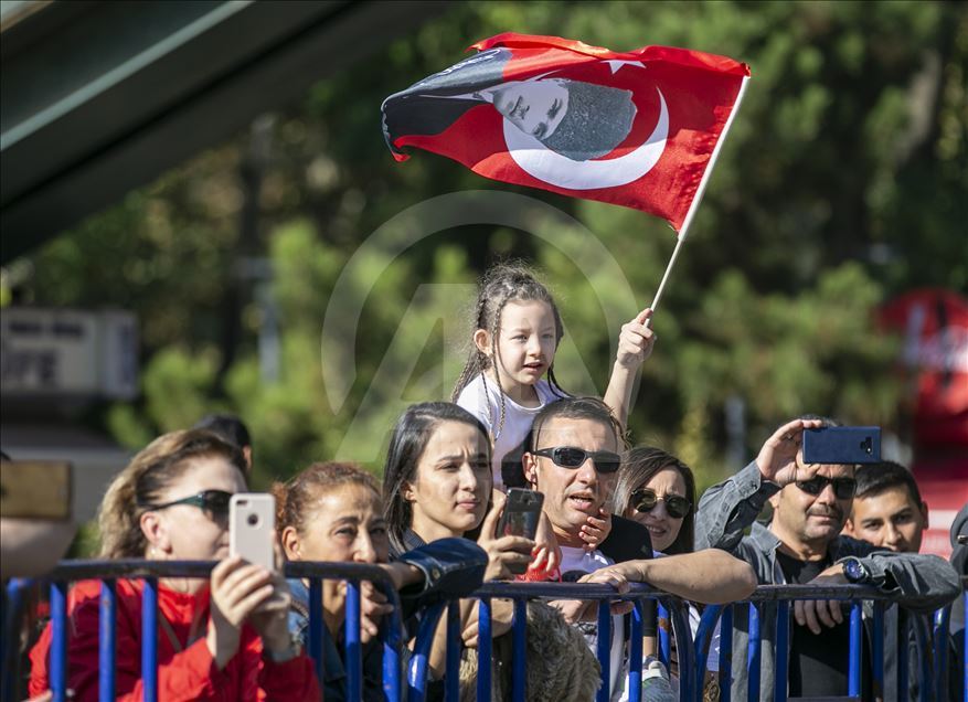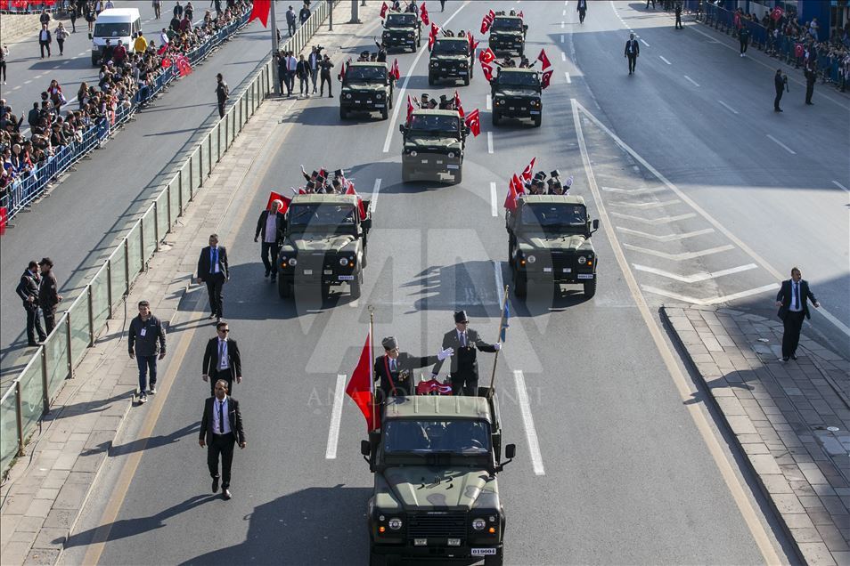 29 Ekim Cumhuriyet Bayramı dolayısıyla Türkiye Büyük Millet Meclisi (TBMM) önünden Ulus'taki ilk Meclis binasına kadar "kortej yürüyüşü" düzenlendi. Vatandaşlar yürüşe ilgi gösterdi. ( Aytaç Ünal - Anadolu Ajansı )Aytaç Ünal