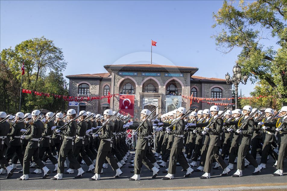 29 Ekim Cumhuriyet Bayramı dolayısıyla Türkiye Büyük Millet Meclisi (TBMM) önünden Ulus'taki ilk Meclis binasına kadar "kortej yürüyüşü" düzenlendi. ( Ali Balıkçı - Anadolu Ajansı )Ali Balıkçı