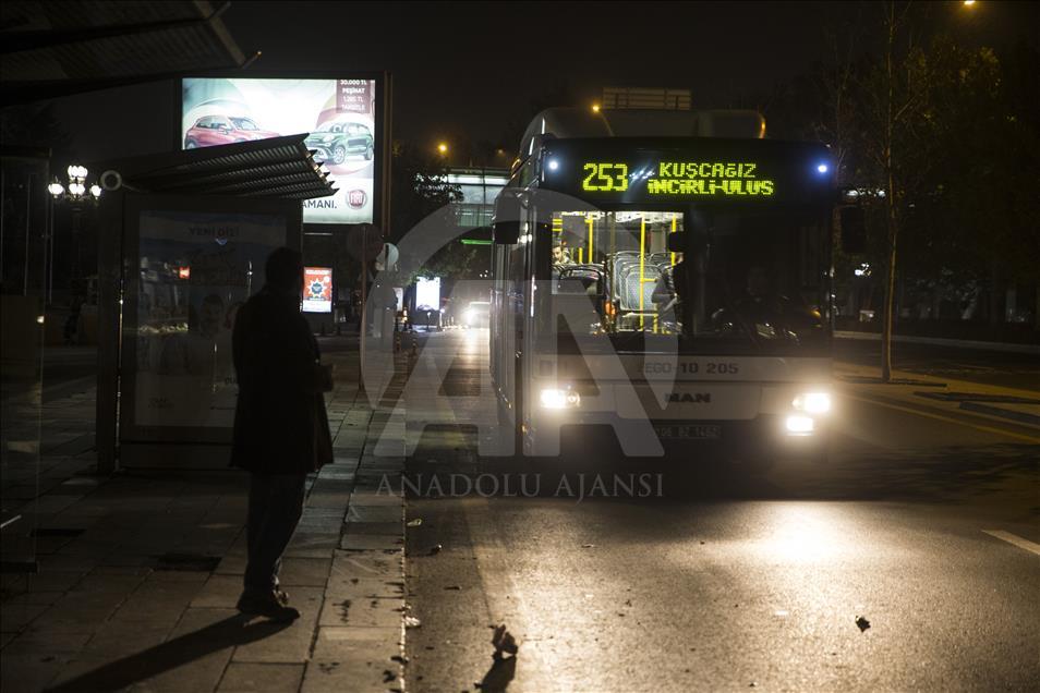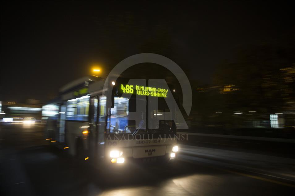 Ankara'da, Büyükşehir Belediye Başkanı Mustafa Tuna'nın talimatıyla EGO otobüslerinin gece saatlerinde de hizmet verme uygulaması 35 hatta, 280 sefer ile başladı.