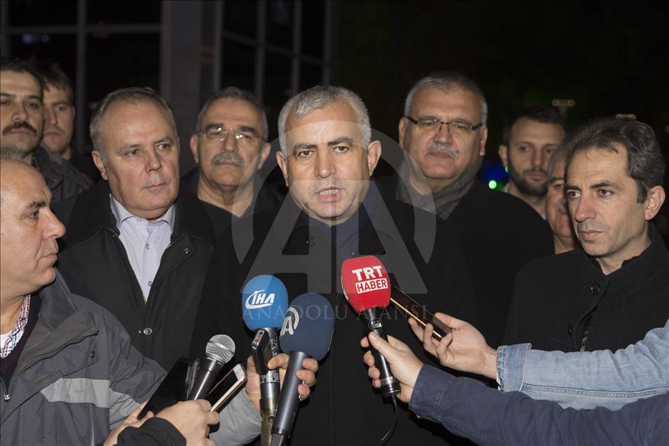 Ankara'da, Büyükşehir Belediye Başkanı Mustafa Tuna'nın talimatıyla EGO otobüslerinin gece saatlerinde de hizmet verme uygulaması 35 hatta, 280 sefer ile başladı. Kızılay'da gazetecilerle gece yarısı bir araya gelen EGO Genel Müdürü Balamir Gündoğdu (ortada), gazetecilere açıklamalarda bulundu. ( Mustafa Kamacı - Anadolu Ajansı )Mustafa Kamacı