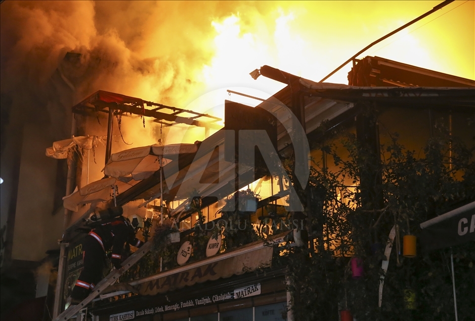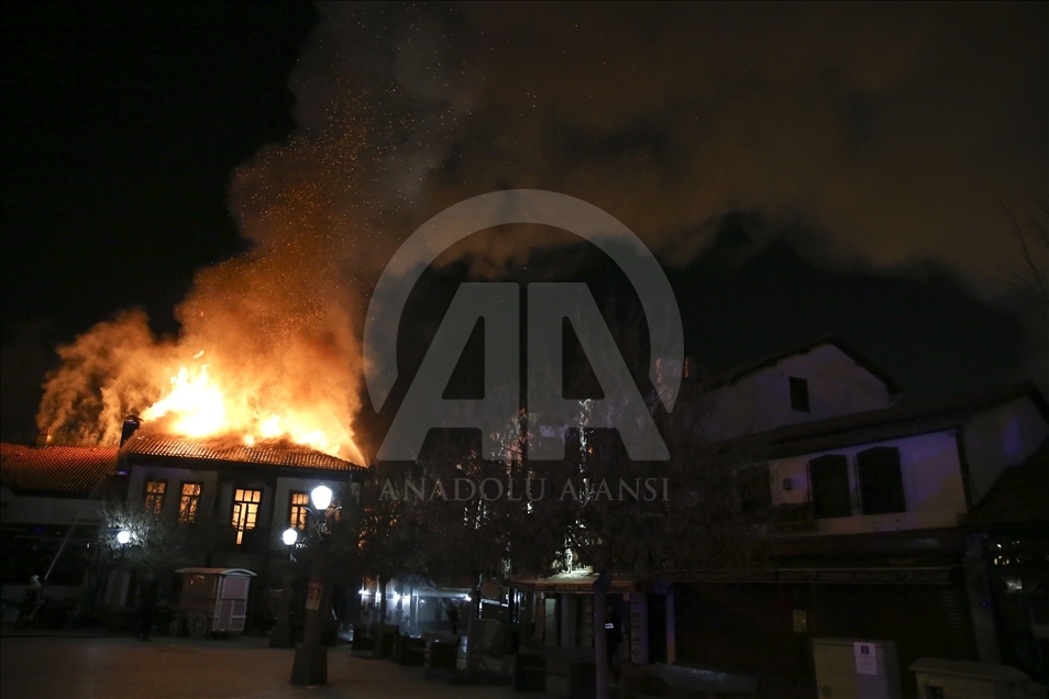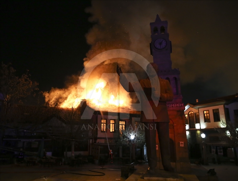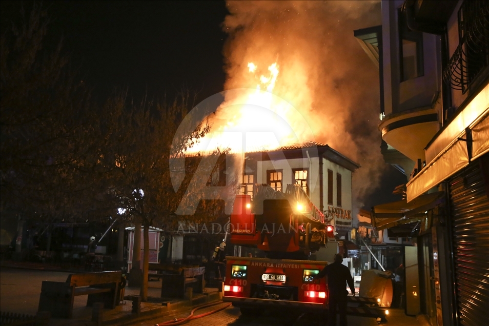 Başkentte tarihi Hamamönü bölgesindeki restoran olarak işletilen konakta yangın çıktı. Kısa sürede büyüyen yangın bitişikteki iki tarihi konağa daha sıçradı. ( Orhan Karslı - Anadolu Ajansı )Orhan Karslı