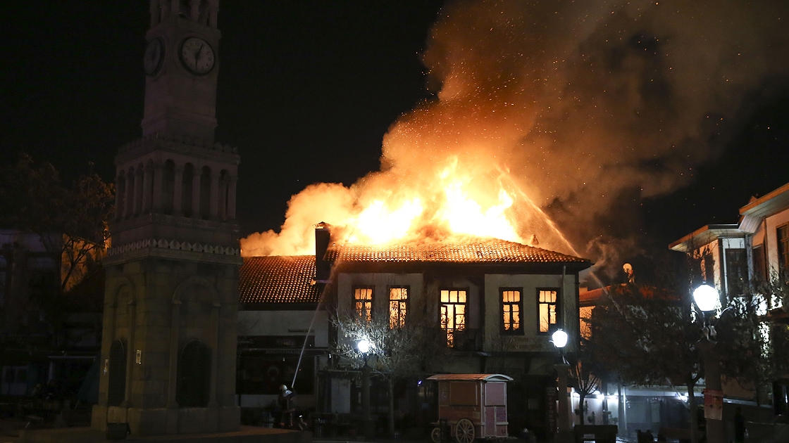 Başkentte tarihi Hamamönü bölgesindeki restoran olarak işletilen konakta yangın çıktı. Olay yerine gelen Ankara Büyükşehir Belediyesine bağlı itfaiye ekipleri yangına müdahale etti. ( Orhan Karslı - Anadolu Ajansı )Orhan Karslı