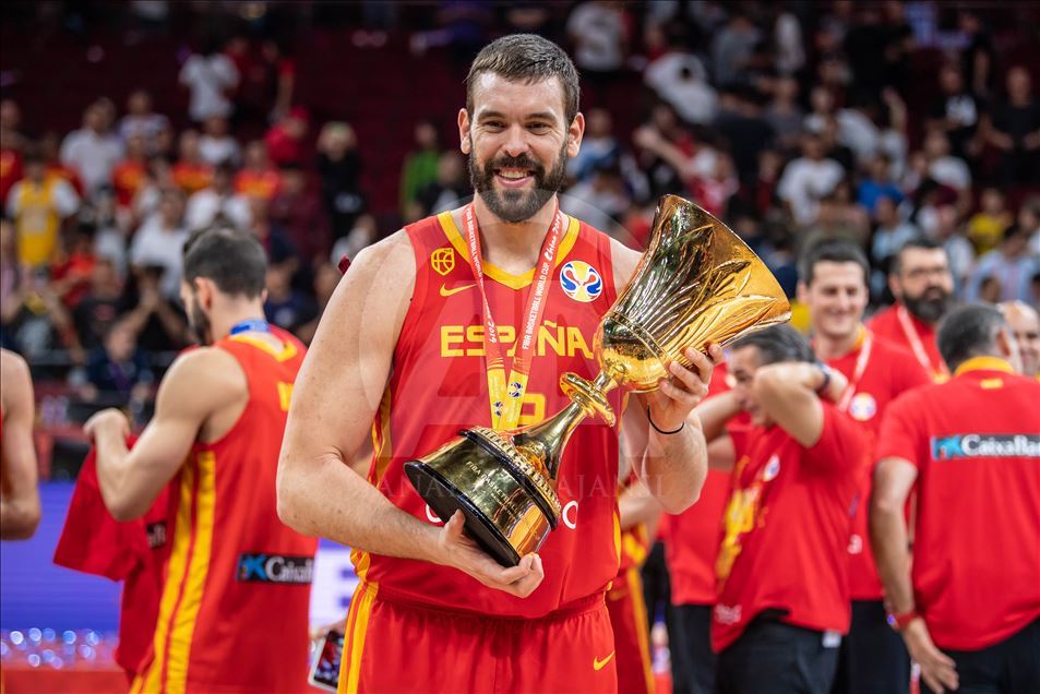 İspanya ve Arjantin Basketbol Milli takımları, Çin'in ev sahipliğinde gerçekleştirilen 2019 FIBA Dünya Kupası final maçında karşılaştı. İspanya, Arjantin'i 95-75 yenerek dünya şampiyonu oldu. Maç sonunda, İspanya takımının oyuncusu Marc Gasol (fotoğrafta) kupa ile poz verdi. ( Stringer - Anadolu Ajansı )Stringer
