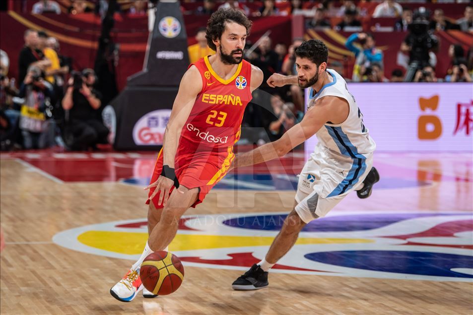 İspanya ve Arjantin Basketbol Milli takımları, Çin'in ev sahipliğinde gerçekleştirilen 2019 FIBA Dünya Kupası final maçında karşılaştı. Bir pozisyonda İspanyol oyuncu Sergio Llull (23) rakibi ile mücadele etti.