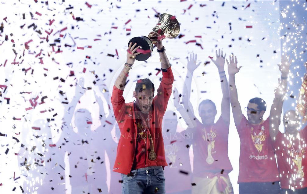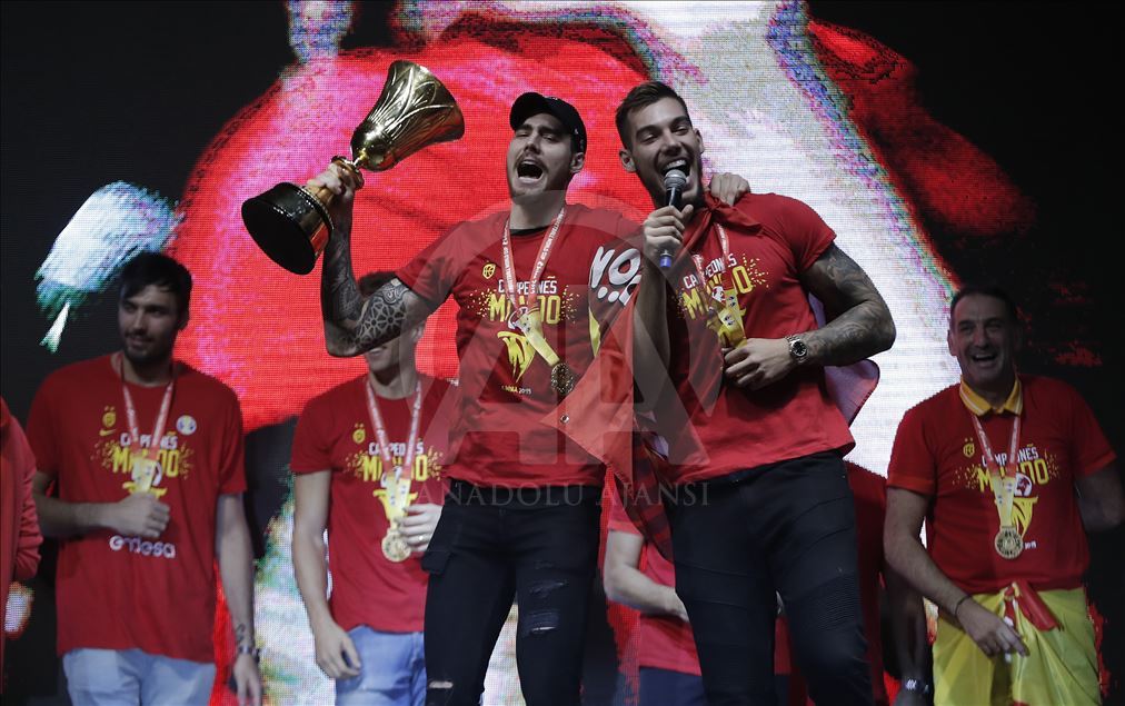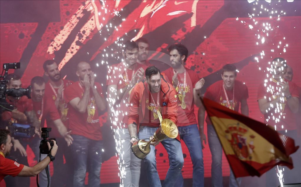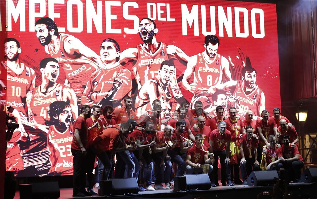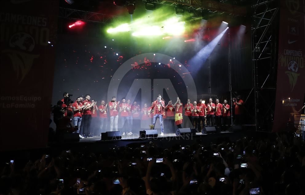 Çin'in ev sahipliğinde düzenlenen 2019 FIBA Dünya Kupası'nda şampiyon olan İspanya A Milli Basketbol Takımı ülkesine döndü. Milli takım heyeti şehir turunun ardından başkent Madrid'deki Colon Meydanı'nda organize edilen ve binlerce İspanyolun toplandığı kutlama alanında vatandaşlar ile buluştu. ( Burak Akbulut - Anadolu Ajansı )Burak Akbulut