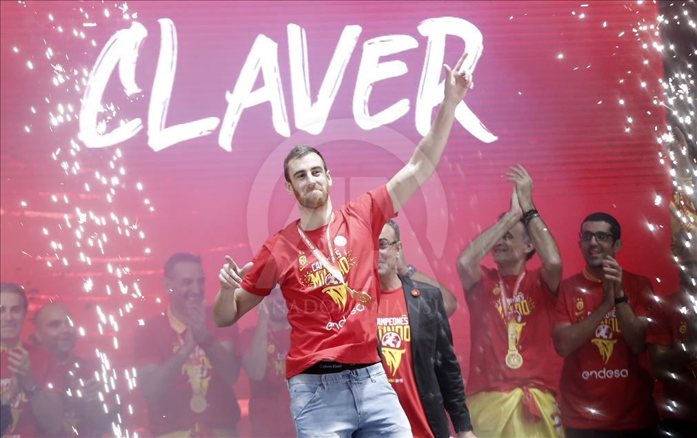 Çin'in ev sahipliğinde düzenlenen 2019 FIBA Dünya Kupası'nda şampiyon olan İspanya A Milli Basketbol Takımı ülkesine döndü. Milli takım heyeti şehir turunun ardından başkent Madrid'deki Colon Meydanı'nda organize edilen ve binlerce İspanyolun toplandığı kutlama alanında vatandaşlar ile buluştu. Kafilede, takım oyuncusu Víctor Claver de yer aldı. ( Burak Akbulut - Anadolu Ajansı )Burak Akbulut