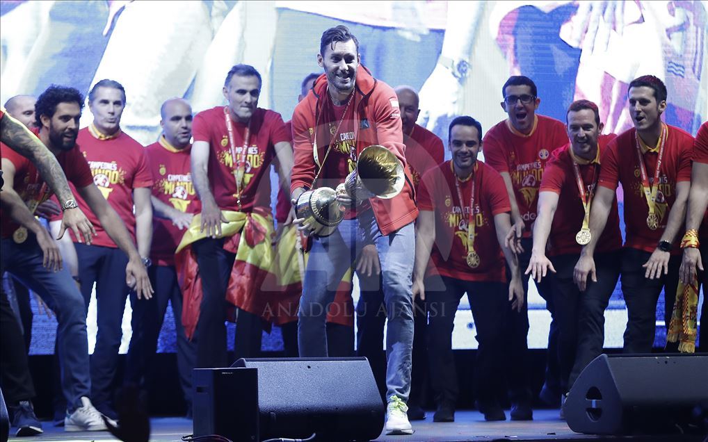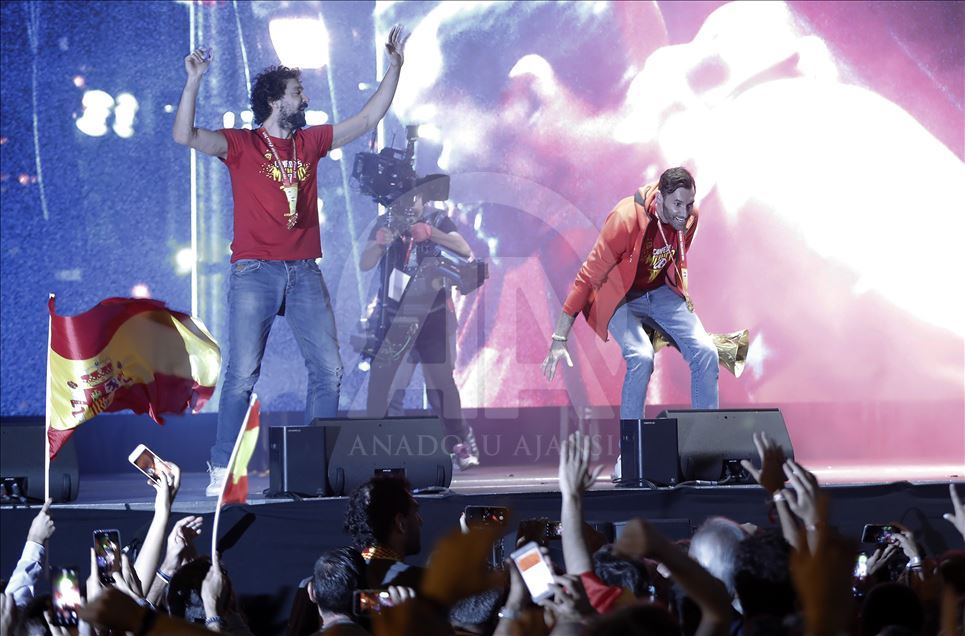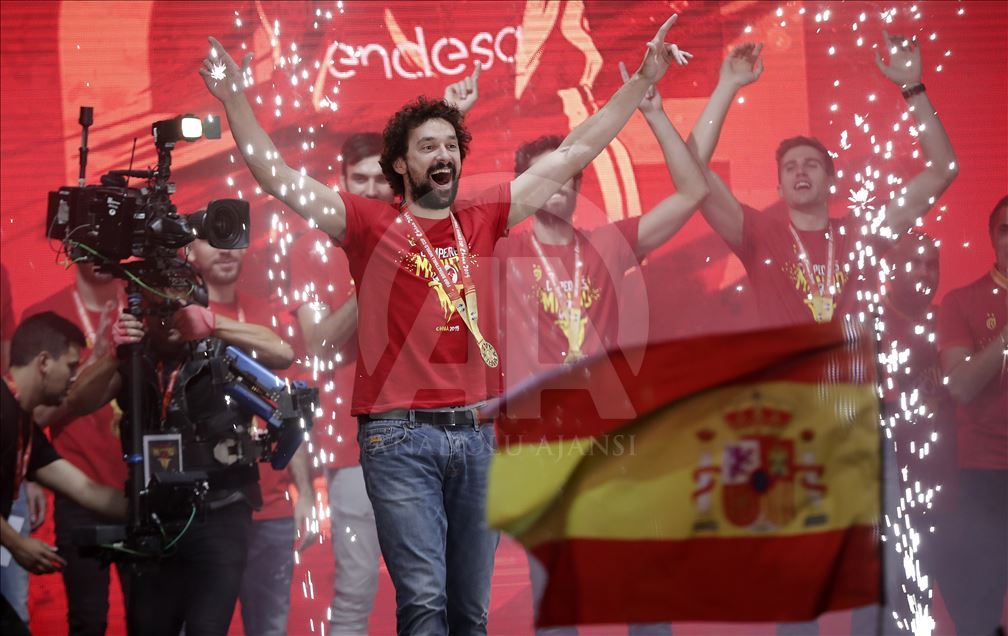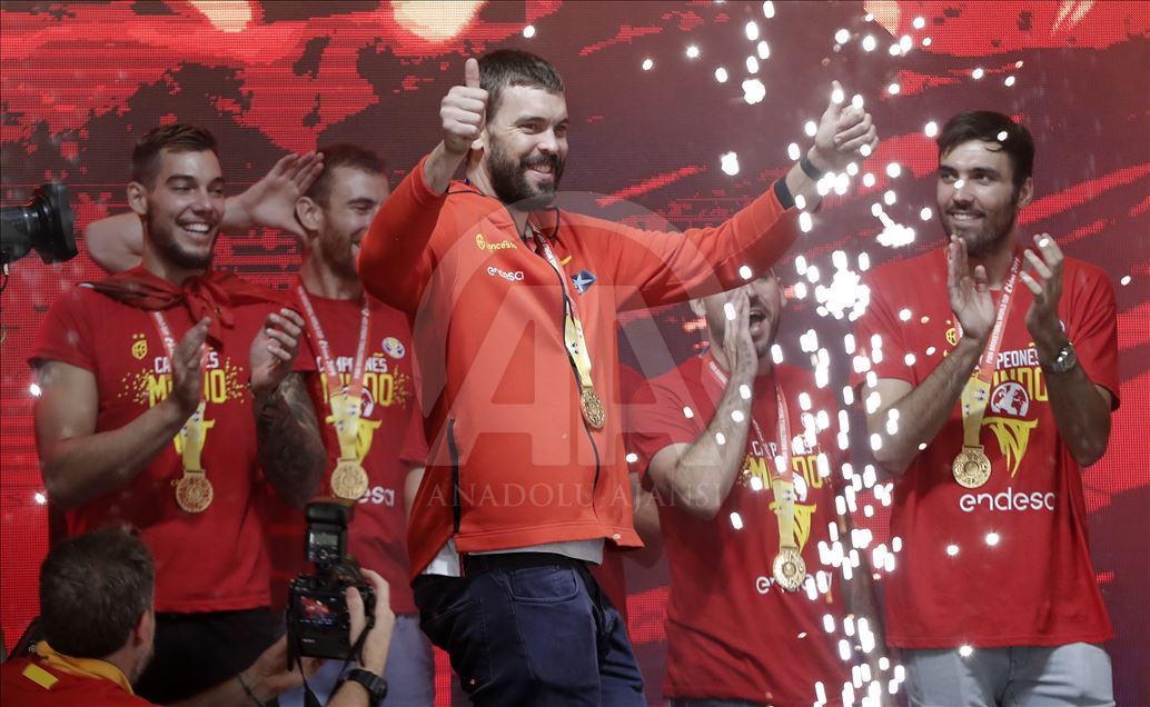 Çin'in ev sahipliğinde düzenlenen 2019 FIBA Dünya Kupası'nda şampiyon olan İspanya A Milli Basketbol Takımı ülkesine döndü. Milli takım heyeti şehir turunun ardından başkent Madrid'deki Colon Meydanı'nda organize edilen ve binlerce İspanyolun toplandığı kutlama alanında vatandaşlar ile buluştu. Kafilede, takım oyuncusu Marc Gasol da yer aldı. ( Burak Akbulut - Anadolu Ajansı )Burak Akbulut