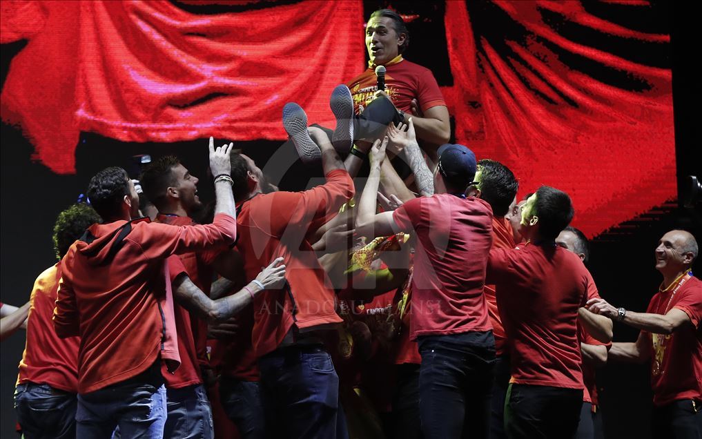 Çin'in ev sahipliğinde düzenlenen 2019 FIBA Dünya Kupası'nda şampiyon olan İspanya A Milli Basketbol Takımı ülkesine döndü. Milli takım heyeti şehir turunun ardından başkent Madrid'deki Colon Meydanı'nda organize edilen ve binlerce İspanyolun toplandığı kutlama alanında vatandaşlar ile buluştu. Kafilede, takım Başantrenörü Sergio Scariolo de yer aldı. ( Burak Akbulut - Anadolu Ajansı )Burak Akbulut