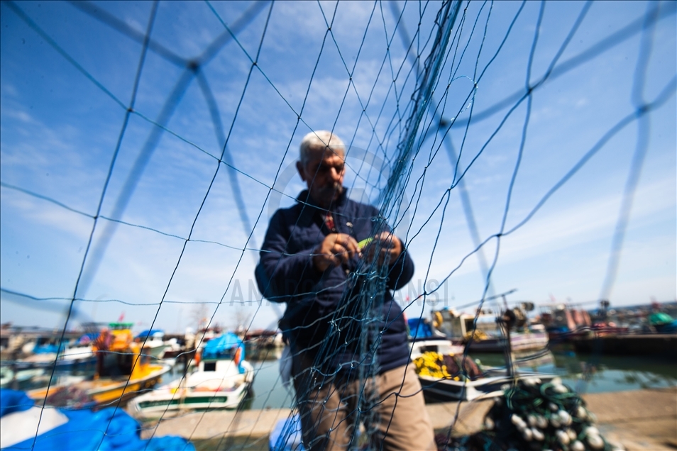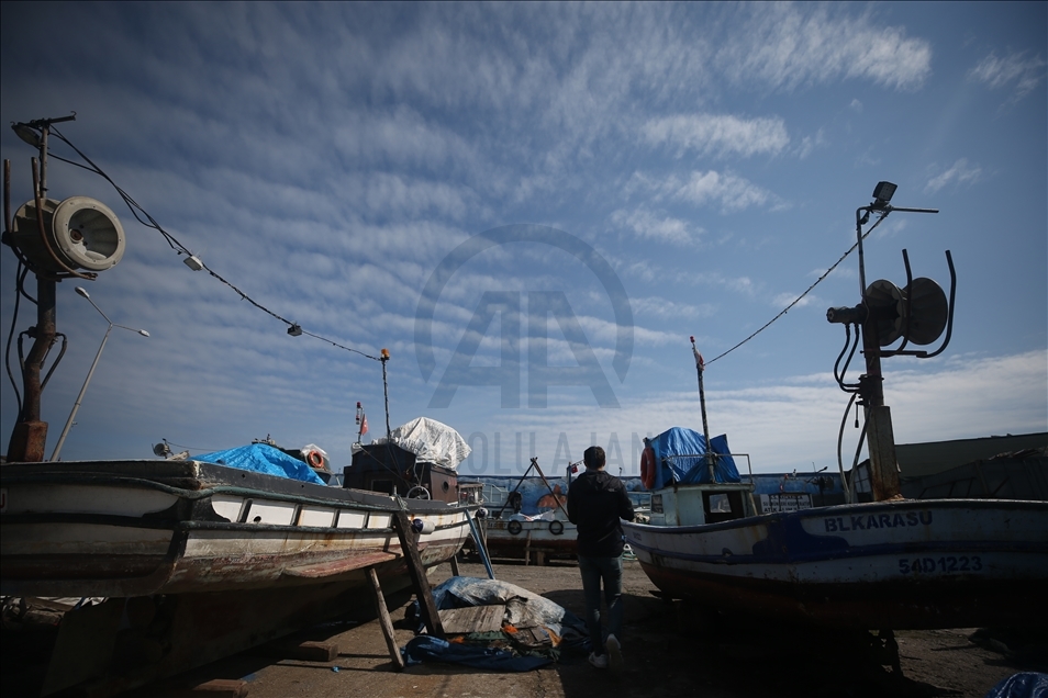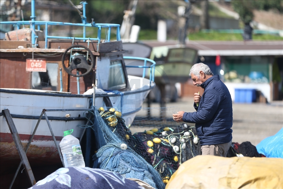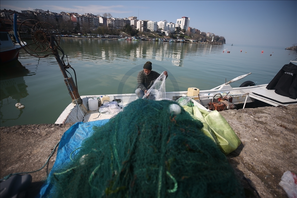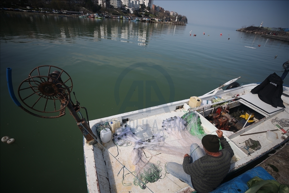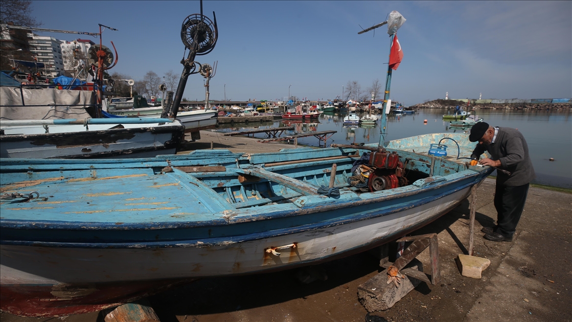 Batı Karadeniz Bölgesi'nin önemli balıkçı limanlarından birine sahip Düzce'nin Akçakoca ilçesinde, balıkçılar av yasağının başlayacağı 15 Nisan'dan 2 gün önce avlanmayı bırakarak ağ ve teknelerini bakıma aldı.