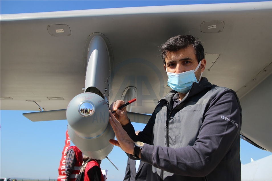 Baykar tarafından yerli ve milli imkanlarla geliştirilen Bayraktar Akıncı Taarruzi İnsansız Hava Aracı (TİHA), bugün yapılan ilk atış testini başarıyla tamamlarken, Roketsan tarafından milli olarak geliştirilen akıllı mühimmatlar MAM-C, MAM-L ve ilk kez kullanılan MAM-T hedefleri başarıyla vurdu. Atış testi için havalanmadan önce apronda bekleyen Bayraktar Akıncı PT-3 TİHA'nın kanat altında bulunan ve ilk kez atılacak MAM-T mühimmatı, Baykar Teknoloji Lideri Selçuk Bayraktar tarafından imzalandı. ( BAYKAR - Anadolu Ajansı )BAYKAR