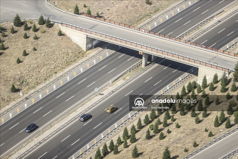 Emniyet Genel Müdürlüğü (EGM) Havacılık Dairesi Başkanlığı ve Ankara Emniyet Müdürlüğü, yollarda trafik güvenliğinin sağlanması, meydana gelebilecek kazaların önüne geçilebilmesi için helikopterle denetim yaptı. Bayram tatilinin sona ermesiyle dönüş yoluna geçenlerin oluşturduğu yoğun trafik nedeniyle Ankara'yı diğer illere bağlayan ana arterler, polis helikopteri tarafından denetleniyor. ( Esra Hacioğlu - Anadolu Ajansı )