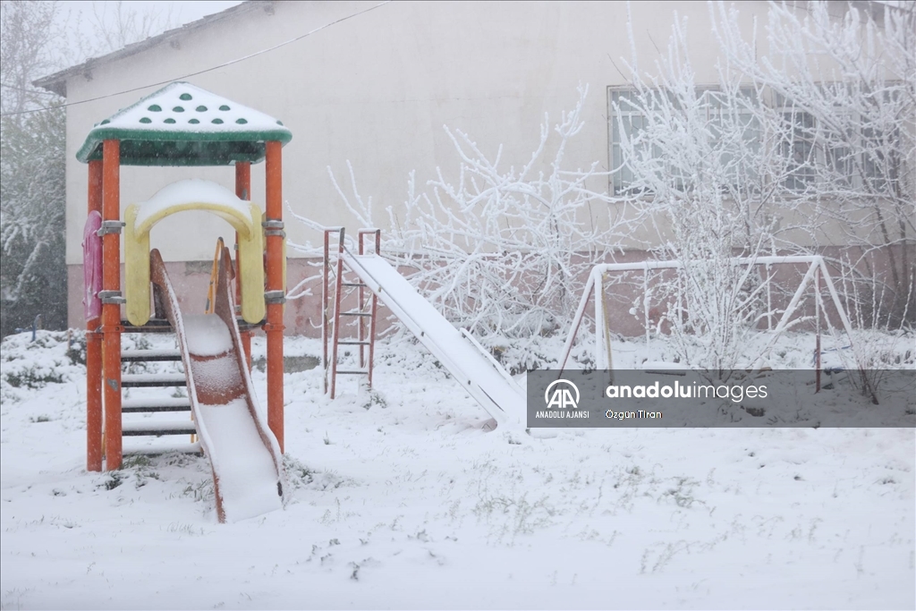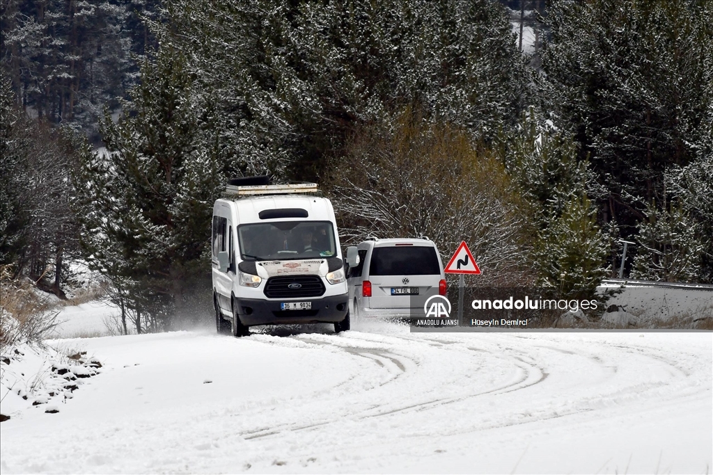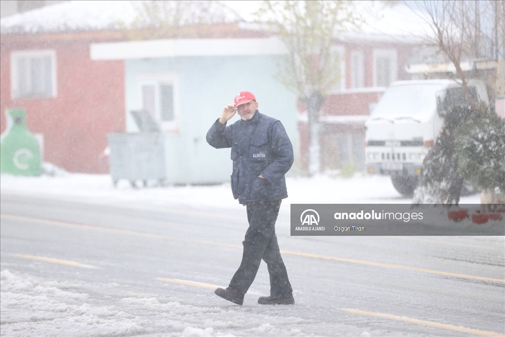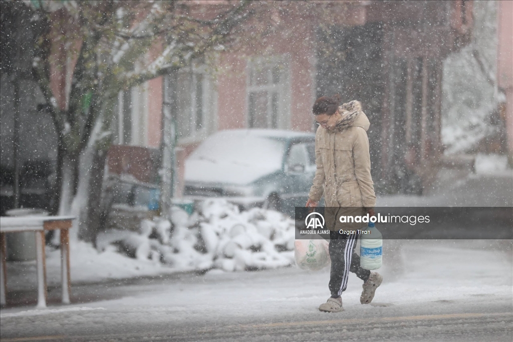 Kars'ın Sarıkamış ilçesinde gece etkili olan sağanak yerini kar yağışına bıraktı. (Hüseyin Demirci - Anadolu Ajansı)Hüseyin Demirci