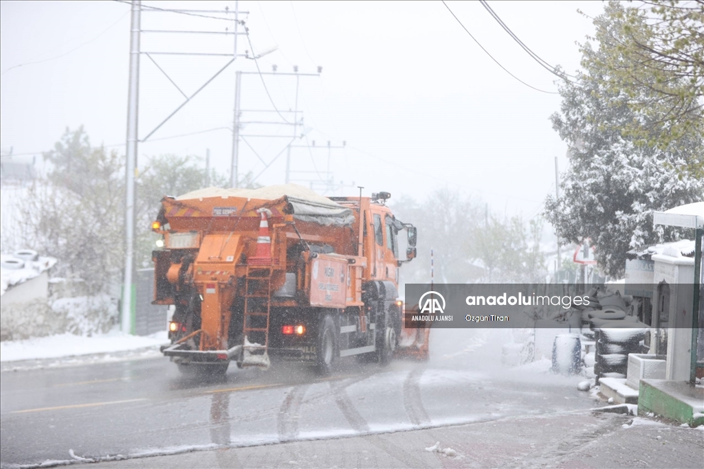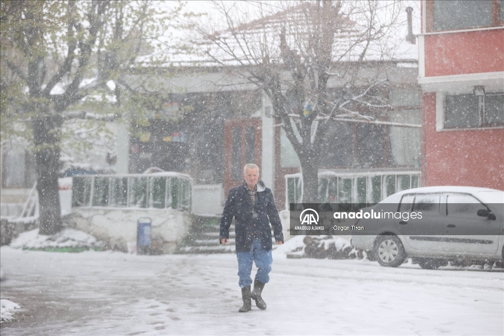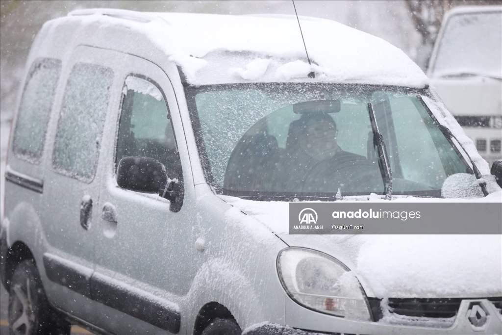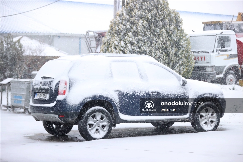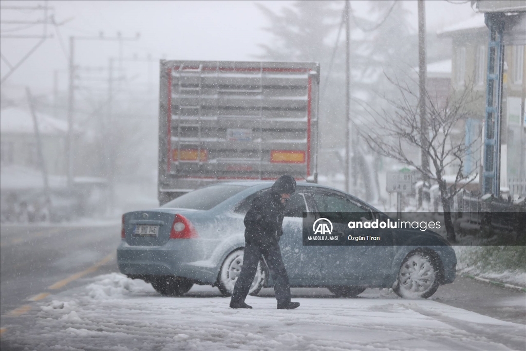 Kars'ın Sarıkamış ilçesinde gece etkili olan sağanak yerini kar yağışına bıraktı. (Hüseyin Demirci - Anadolu Ajansı)Hüseyin Demirci