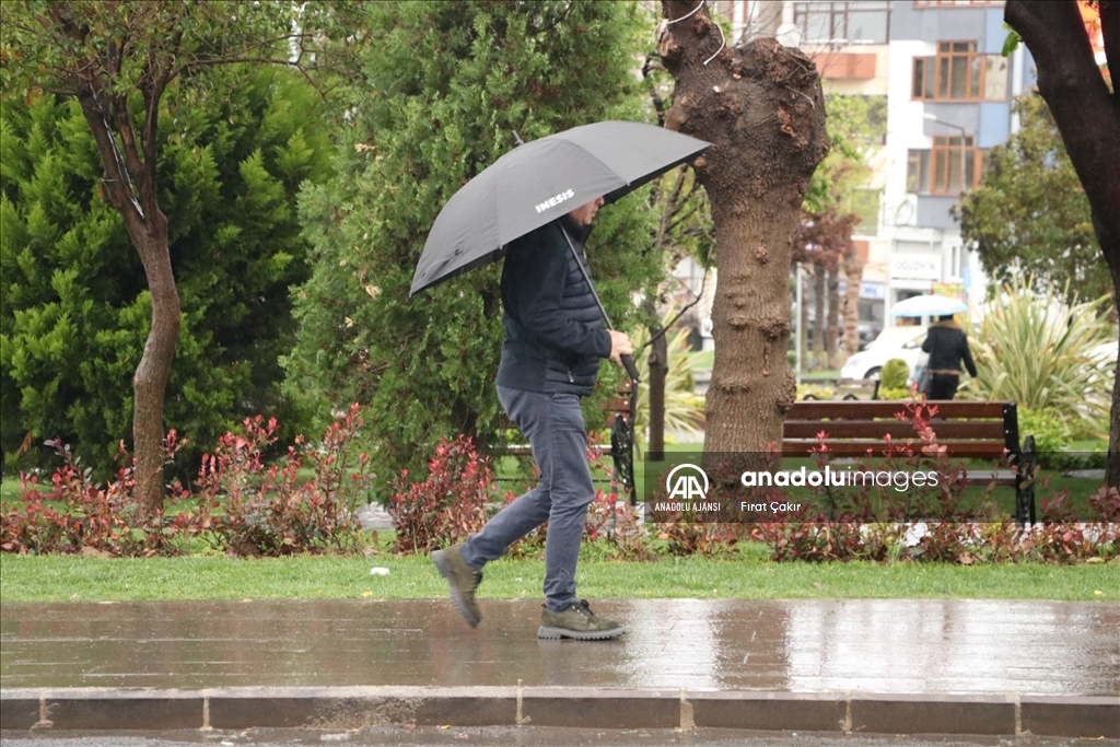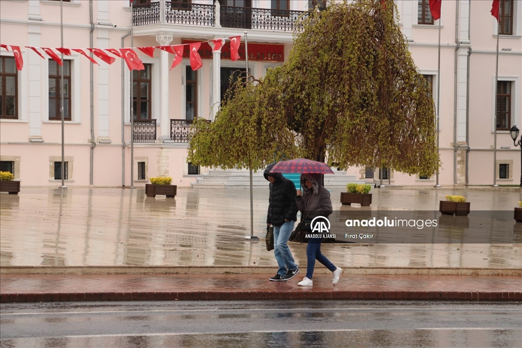 Tekirdağ'da kent merkezinde sağanak, yüksek kesimlerde ise kar yağışı etkili oluyor. (Fırat Çakır - Anadolu Ajansı)Fırat Çakır