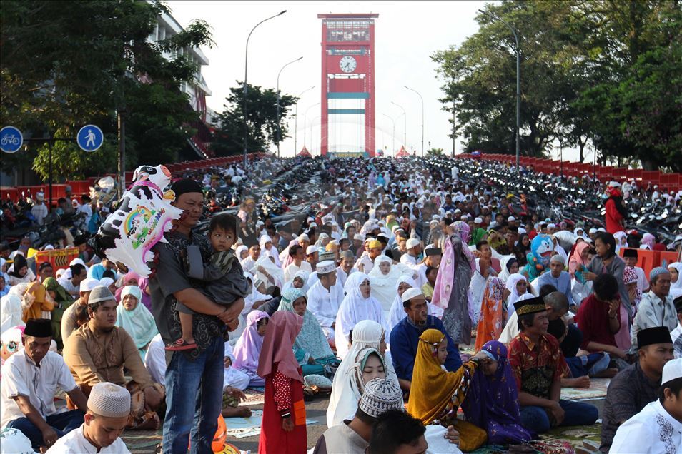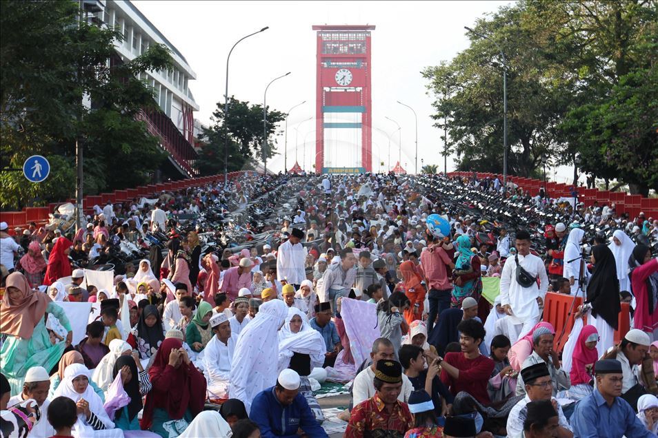 Endonezya'nın Palembang kentindeki Müslümanlar, bayram namazını kılarak ve dua ederek Ramazan Bayramı kutlamalarına başladı. ( Muhammad A.F - Anadolu Ajansı )Muhammad A.F