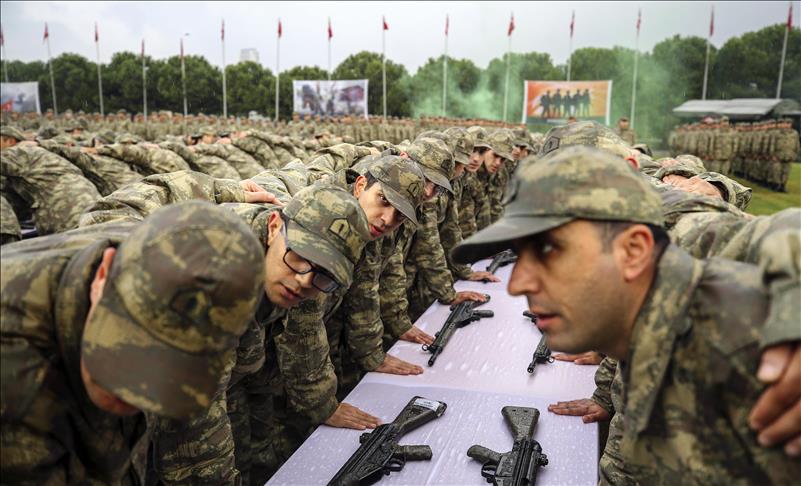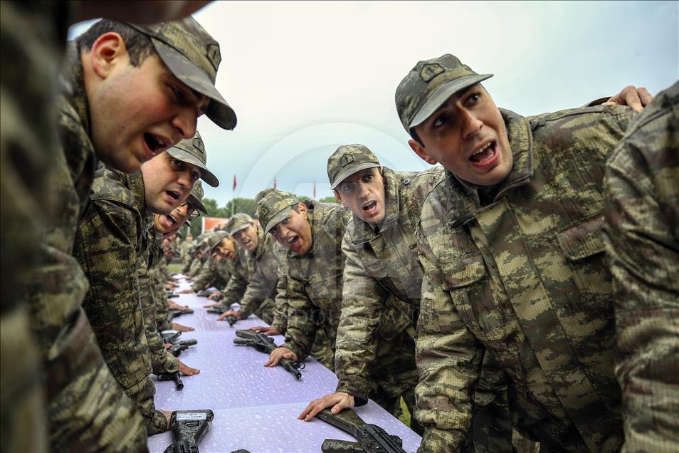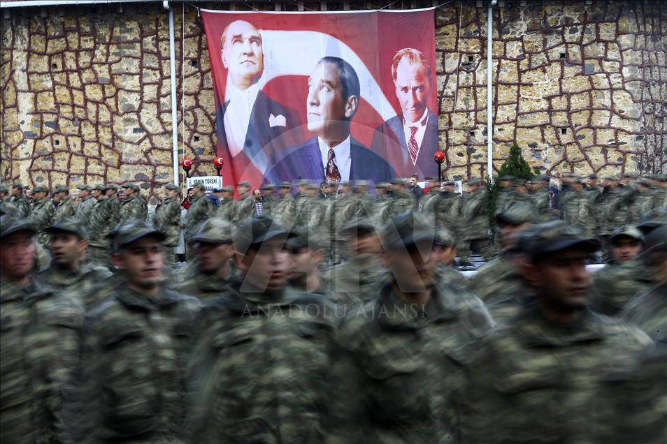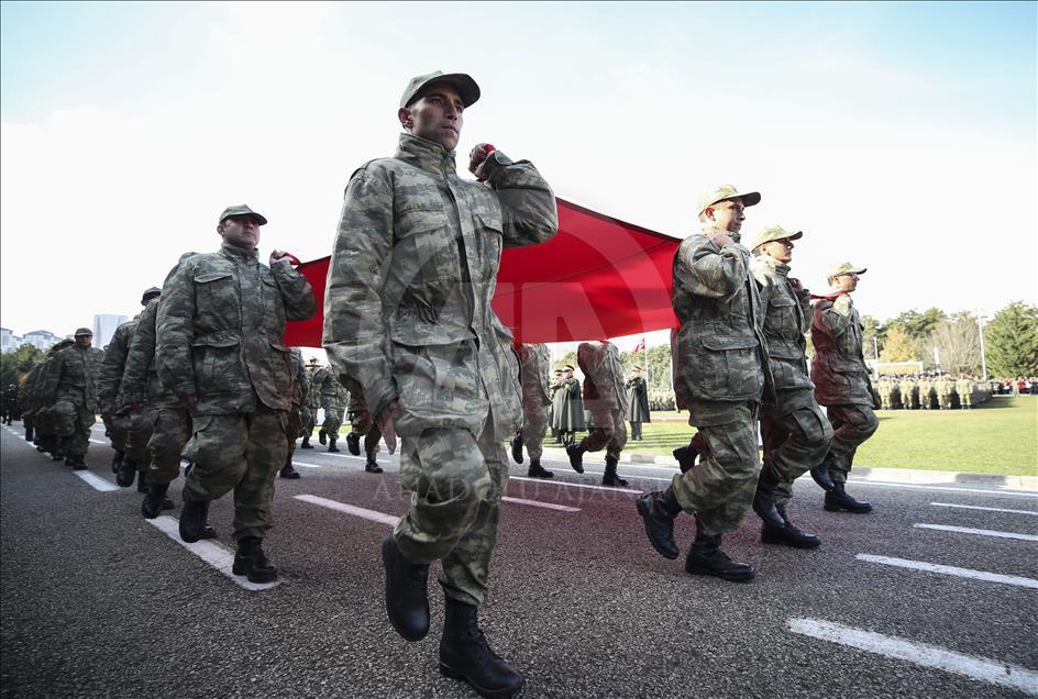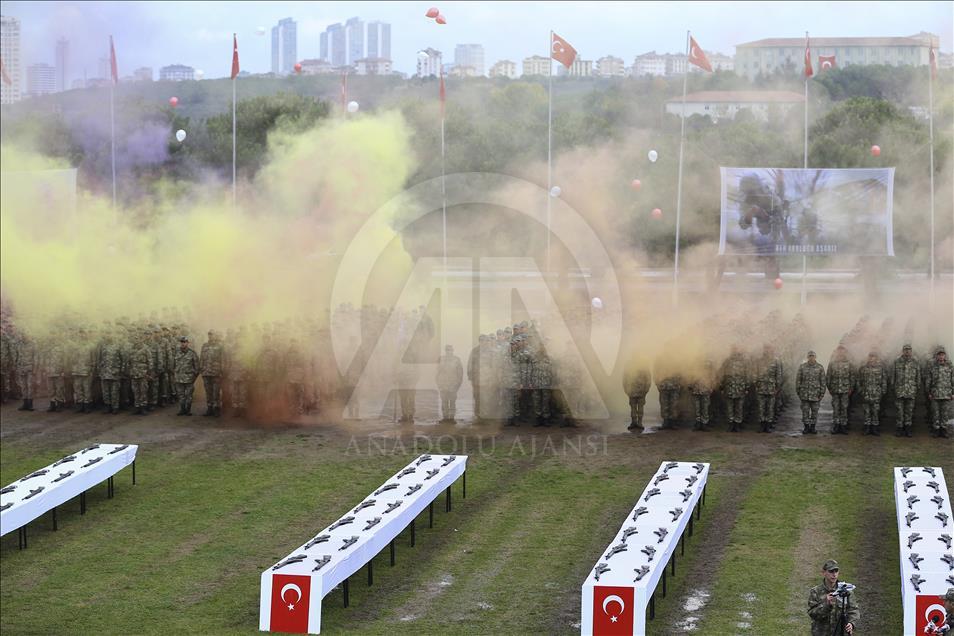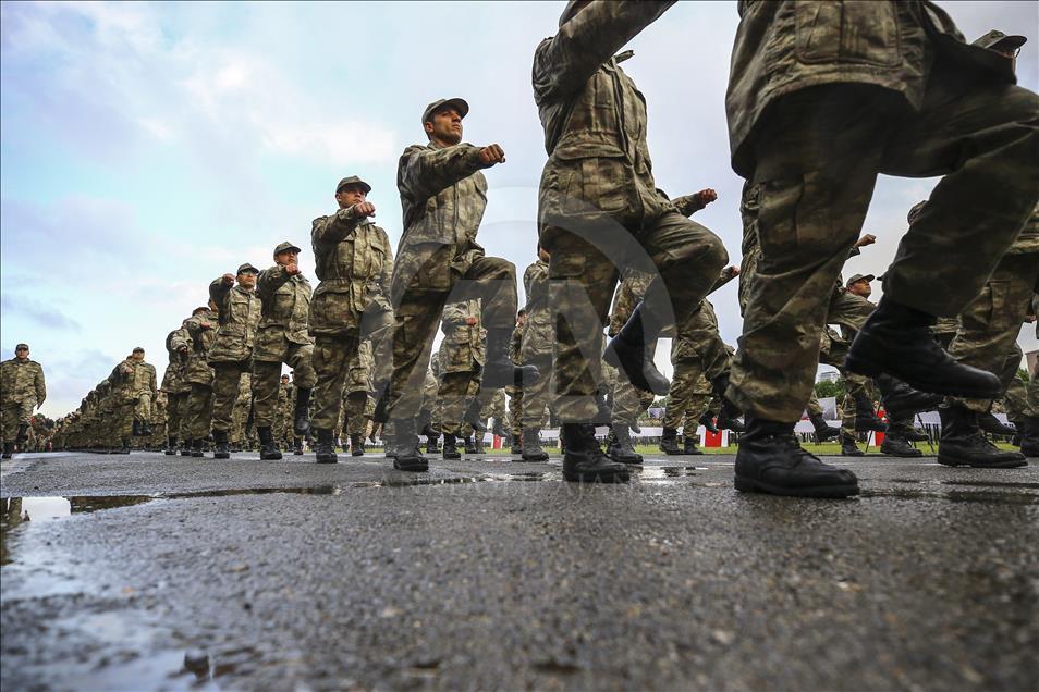 General Kenan Evren Kışlası İkmal Maliye Okulu ve Eğitim Merkezi Komutanlığı'nda temel eğitimlerini tamamlayan bin 417 bedelli askerlik yükümlüsü için yemin ve terhis töreni düzenlendi. ( Serhat Çağdaş - Anadolu Ajansı )Serhat Çağdaş