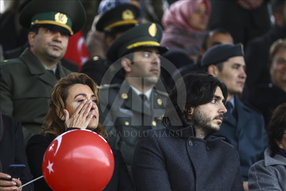 General Kenan Evren Kışlası İkmal Maliye Okulu ve Eğitim Merkezi Komutanlığı'nda temel eğitimlerini tamamlayan bin 417 bedelli askerlik yükümlüsü için yemin ve terhis töreni düzenlendi. Bedelli askerler arasında torunu bulunan Aydın Doğan ve kızı Arzuhan Doğan Yalçındağ da (solda) töreni izledi. ( Serhat Çağdaş - Anadolu Ajansı )Serhat Çağdaş