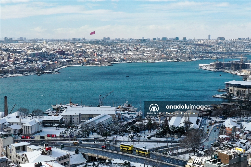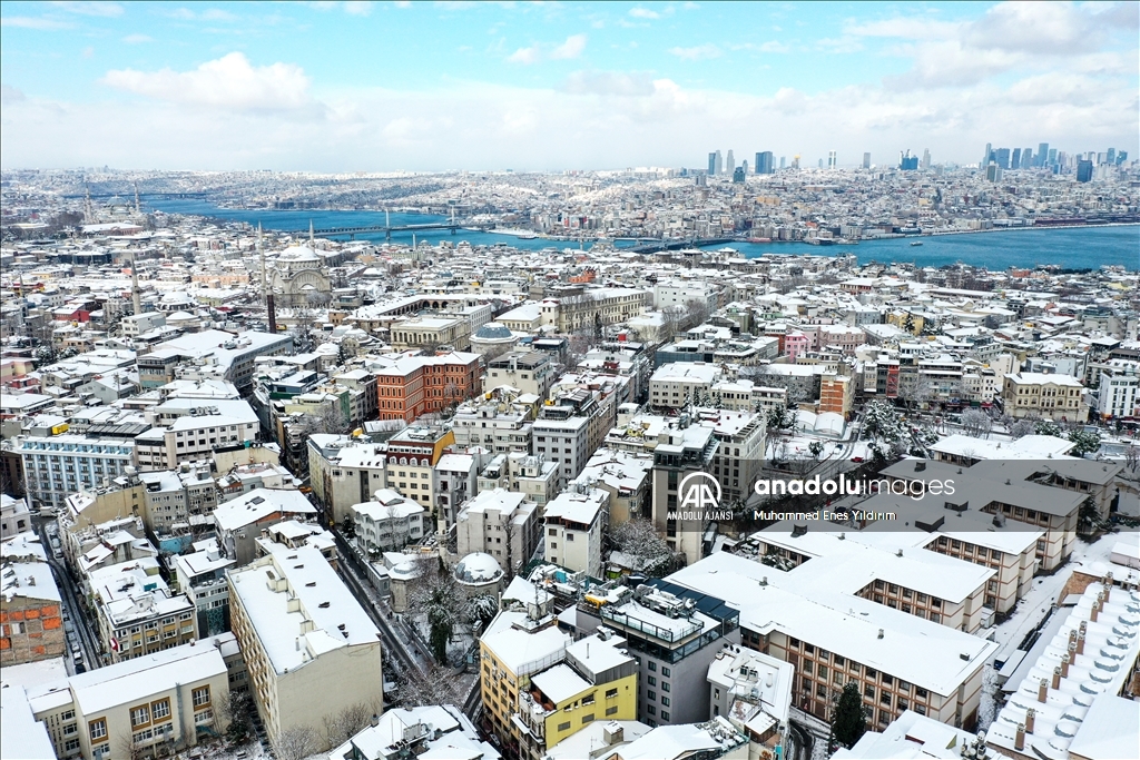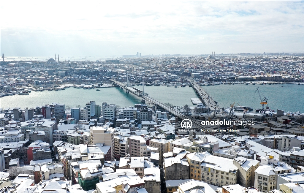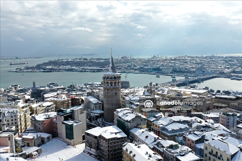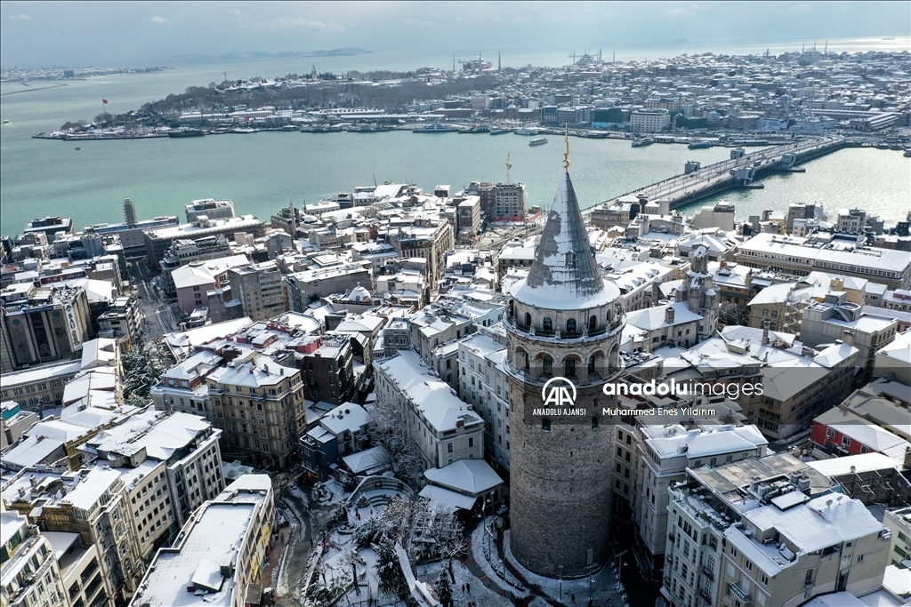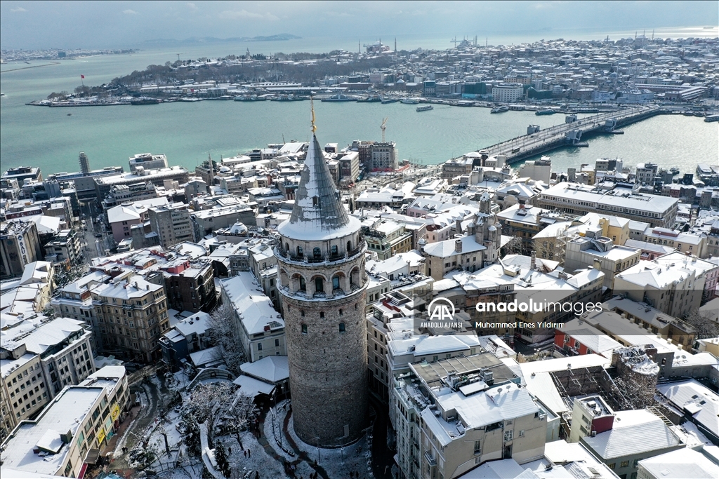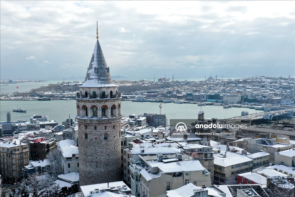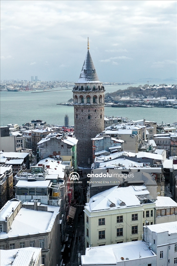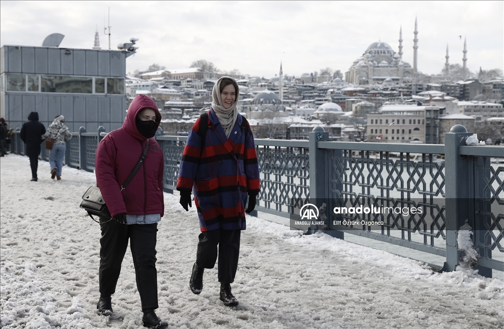 İstanbul'da kar yağışı Galata Kulesi, Eminönü ve çevrelerinde etkili oldu.