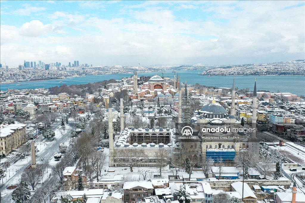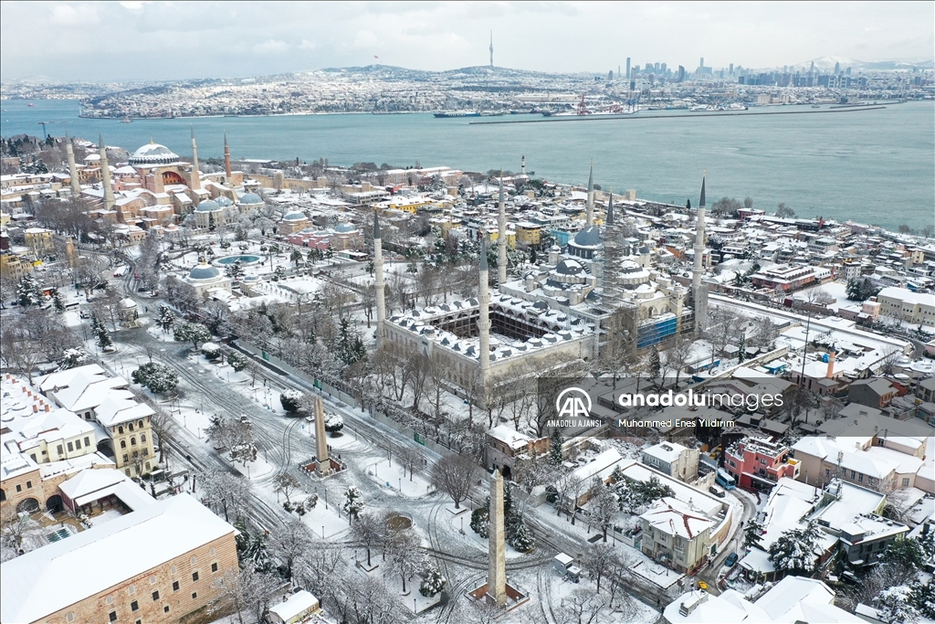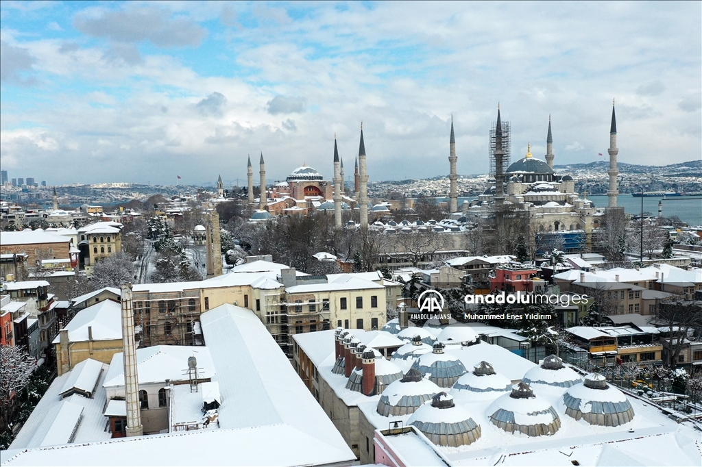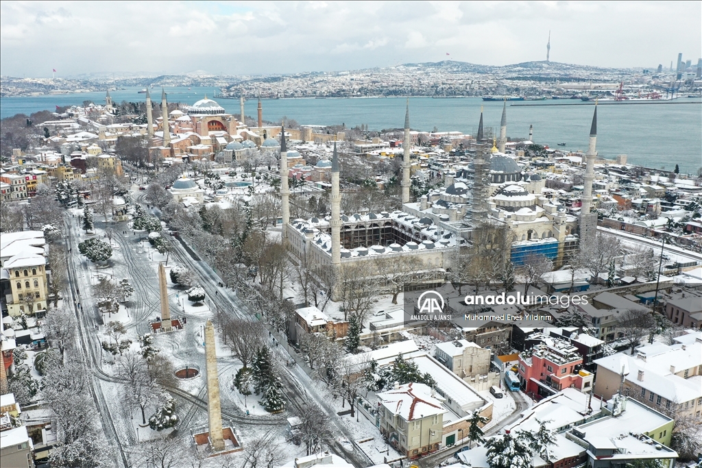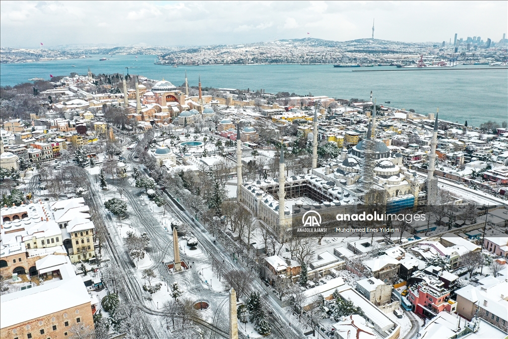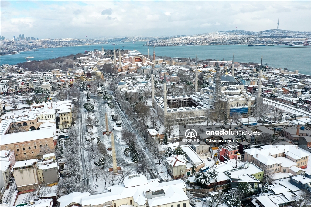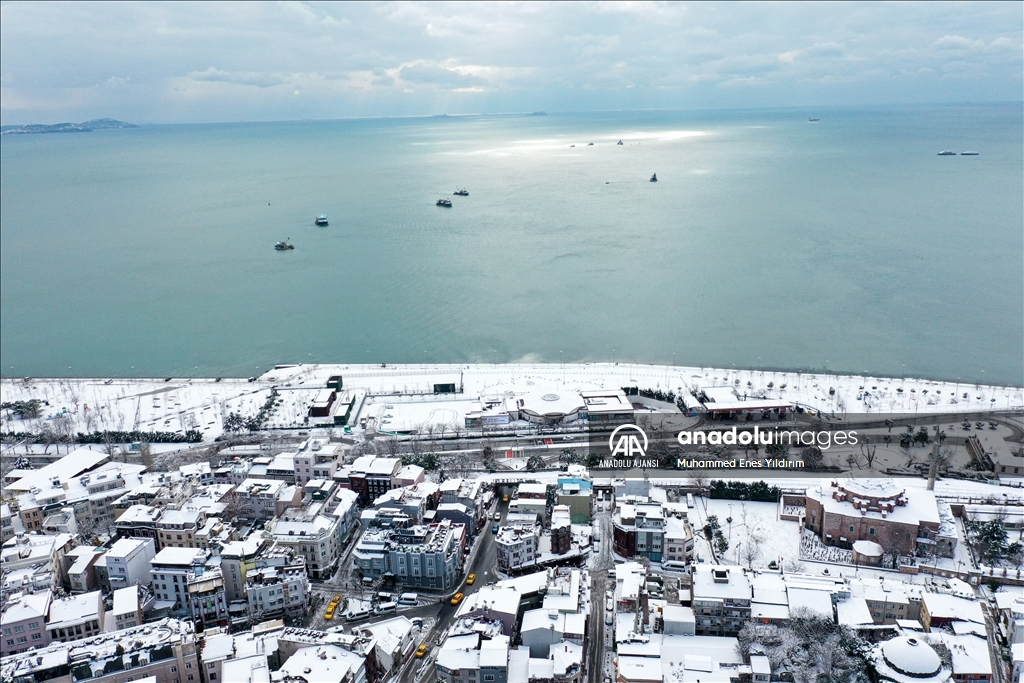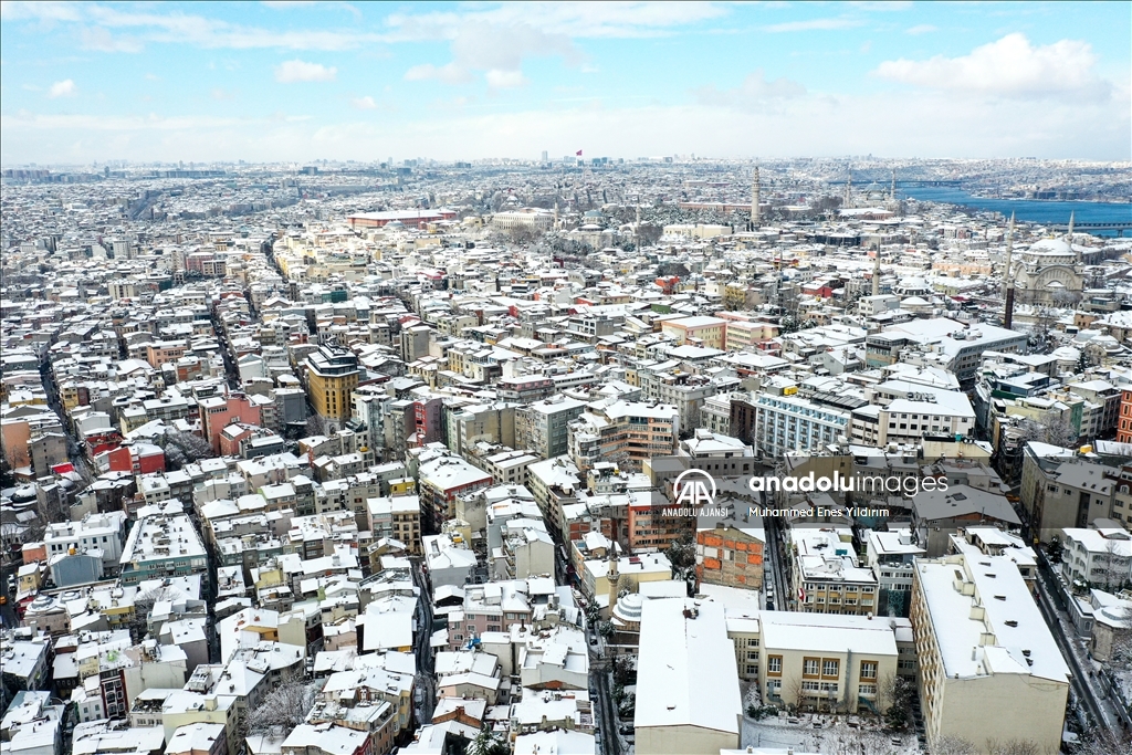 İstanbul'da kar yağışı Galata Kulesi, Eminönü ve çevrelerinde etkili oldu.