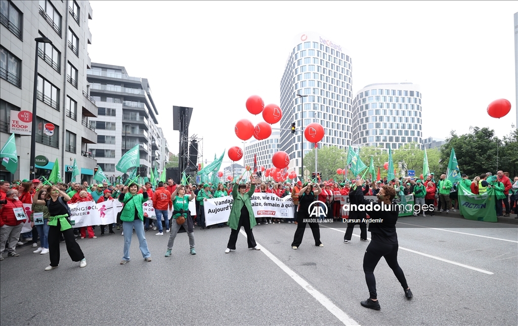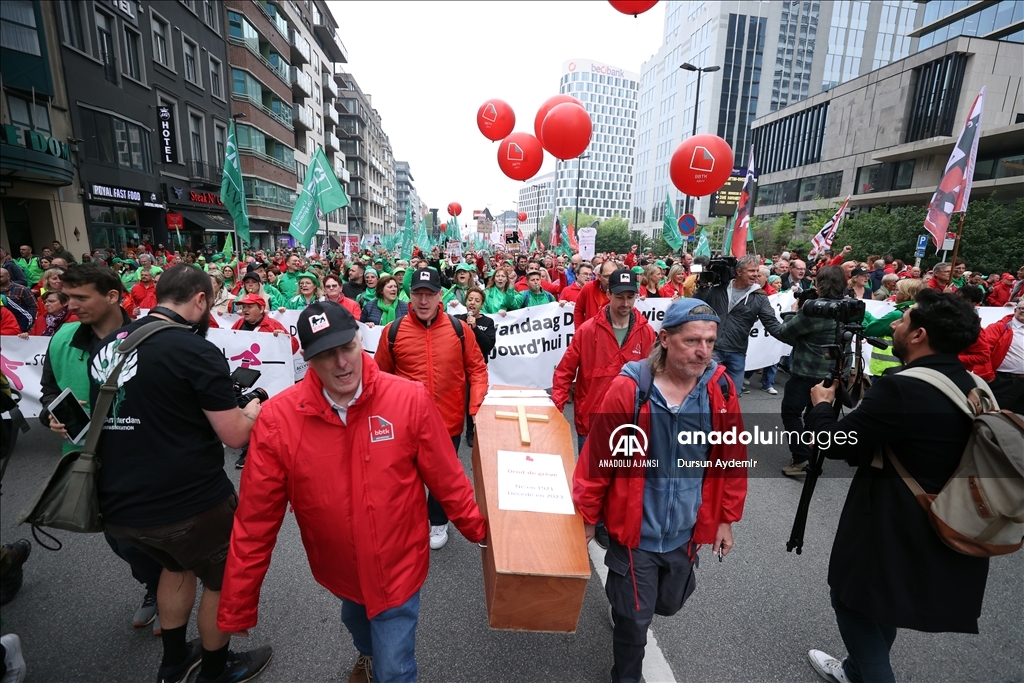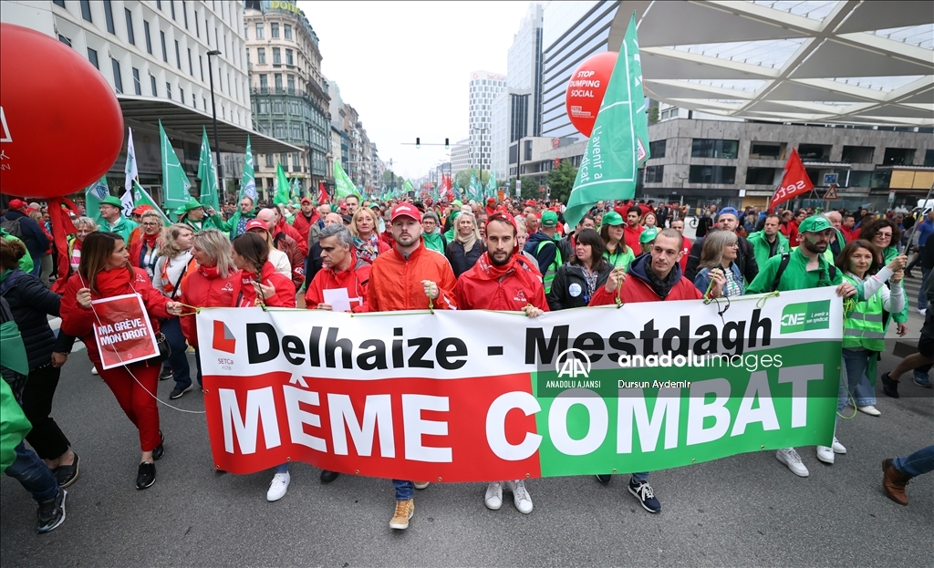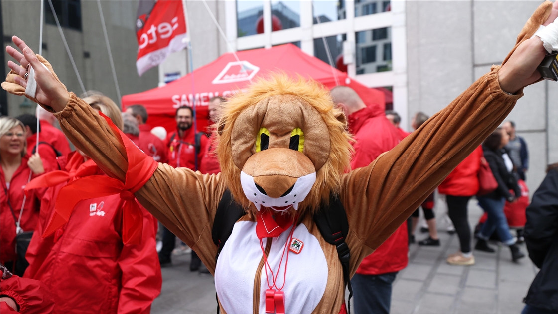 Belçika’da İşçi sendikaları ülke genelinde bir günlük greve gitti. Başkent Brüksel’de Kuzey Tren İstasyonu önünde toplanan binlerce sendika üyesi, hükümetin ekonomi ve ücret politikalarına karşı protesto gösterisi düzenledi.