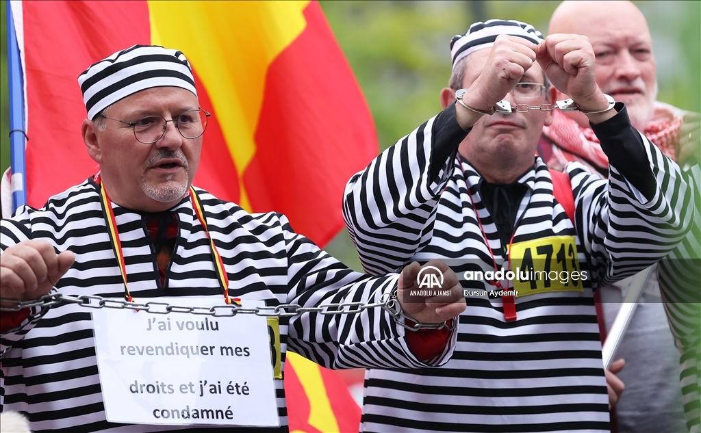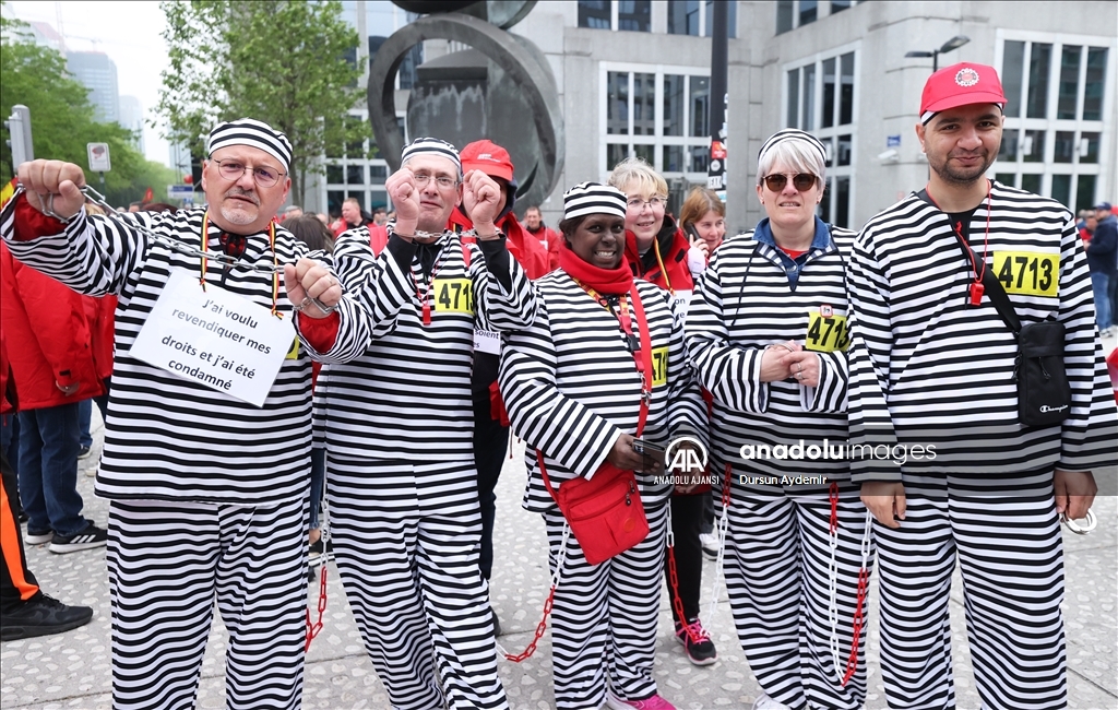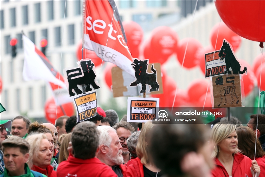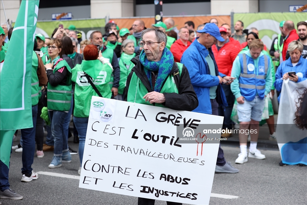 Belçika’da İşçi sendikaları ülke genelinde bir günlük greve gitti. Başkent Brüksel’de Kuzey Tren İstasyonu önünde toplanan binlerce sendika üyesi, hükümetin ekonomi ve ücret politikalarına karşı protesto gösterisi düzenledi. ( Dursun Aydemir - Anadolu Ajansı )Dursun Aydemir