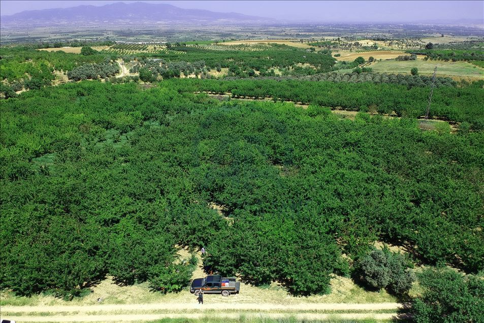 Türkiye'nin bereketli topraklarında hububat, sebze ve meyve üreterek hem yurdun hem de dünyanın birçok ülkesinin gıda ihtiyacını karşılayan çiftçiler bugünlerde yoğun bir telaş yaşıyor. Fotoğrafta Gaziantep'teki Antep fıstığı bahçeleri görülüyor. ( Mehmet Akif Parlak - Anadolu Ajansı )Mehmet Akif Parlak