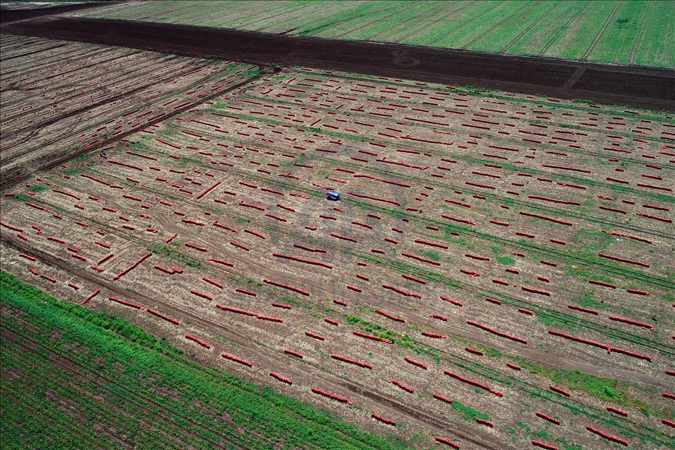 Türkiye'nin bereketli topraklarında hububat, sebze ve meyve üreterek hem yurdun hem de dünyanın birçok ülkesinin gıda ihtiyacını karşılayan çiftçiler bugünlerde yoğun bir telaş yaşıyor. Fotoğrafta Diyarbakır'daki karpuz, mısır ve pamuk arazileri görülüyor. ( Bestami Bodruk - Anadolu Ajansı )Bestami Bodruk