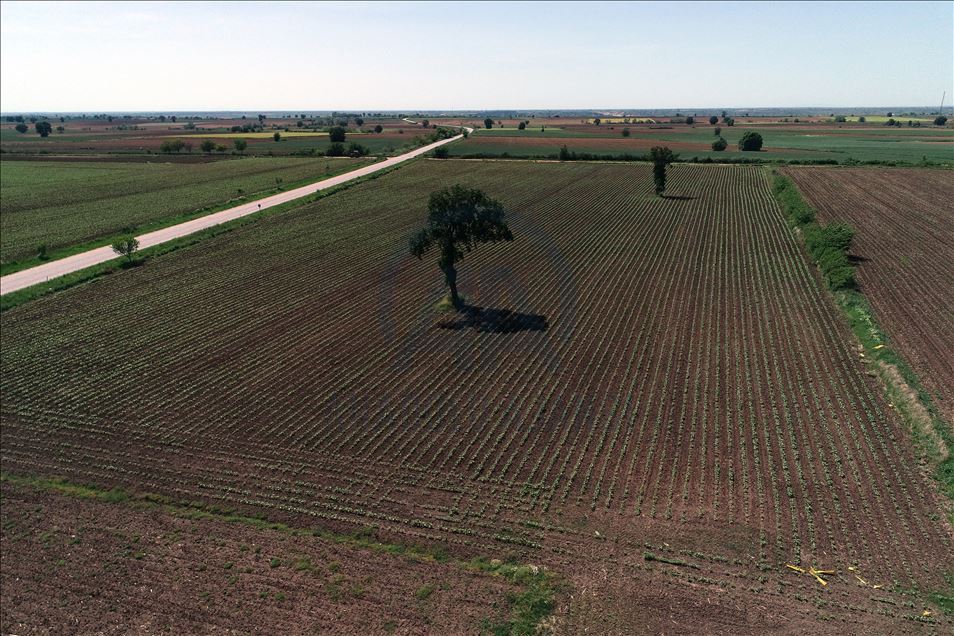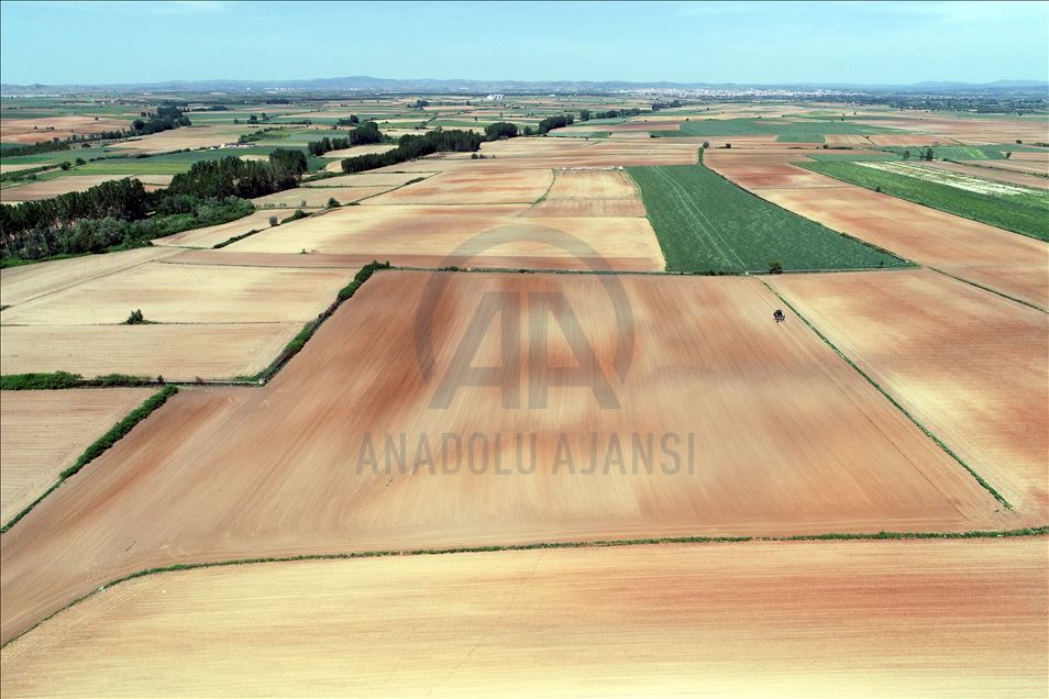 Türkiye'nin bereketli topraklarında hububat, sebze ve meyve üreterek hem yurdun hem de dünyanın birçok ülkesinin gıda ihtiyacını karşılayan çiftçiler bugünlerde yoğun bir telaş yaşıyor. Fotoğrafta Edirne'deki buğday tarlası görülüyor. ( Gökhan Balcı - Anadolu Ajansı )Gökhan Balcı