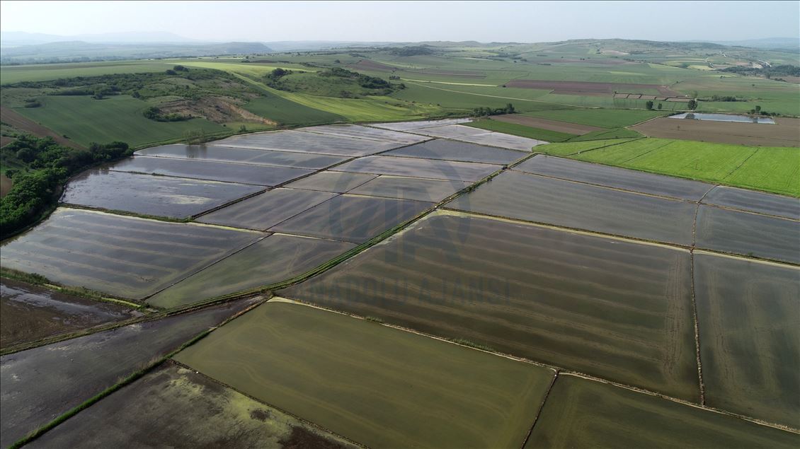 Türkiye'nin bereketli topraklarında hububat, sebze ve meyve üreterek hem yurdun hem de dünyanın birçok ülkesinin gıda ihtiyacını karşılayan çiftçiler bugünlerde yoğun bir telaş yaşıyor. Fotoğrafta Edirne'deki çeltik tarlaları görülüyor. ( Cihan Demirci - Anadolu Ajansı )Cihan Demirci