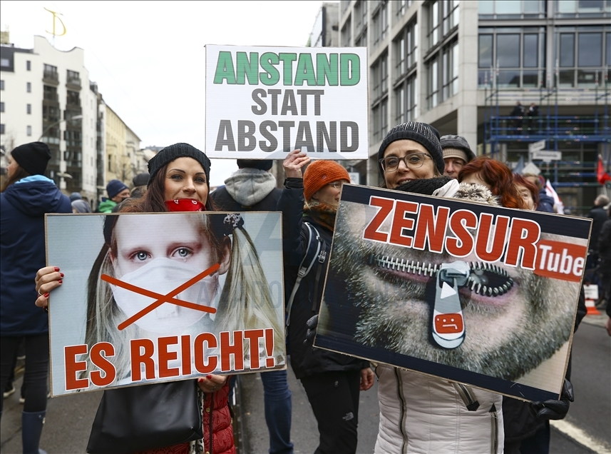 Almanya'da yeni tip koronavirüs (Kovid-19) salgını ile mücadele kapsamında alınan önlemlere karşı çıkan "Querdenken" adlı bir grup başkent Berlin'de protesto düzenledi. ( Abdulhamid Hoşbaş - Anadolu Ajansı )Abdulhamid Hoşbaş