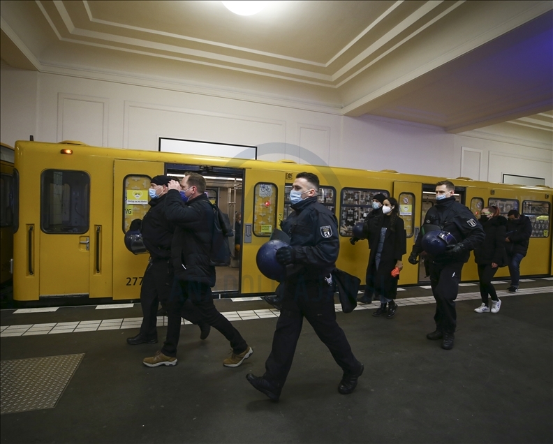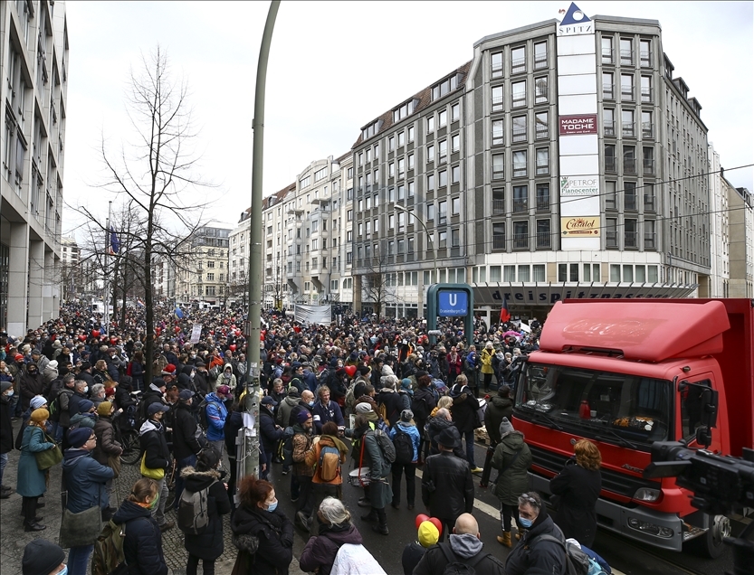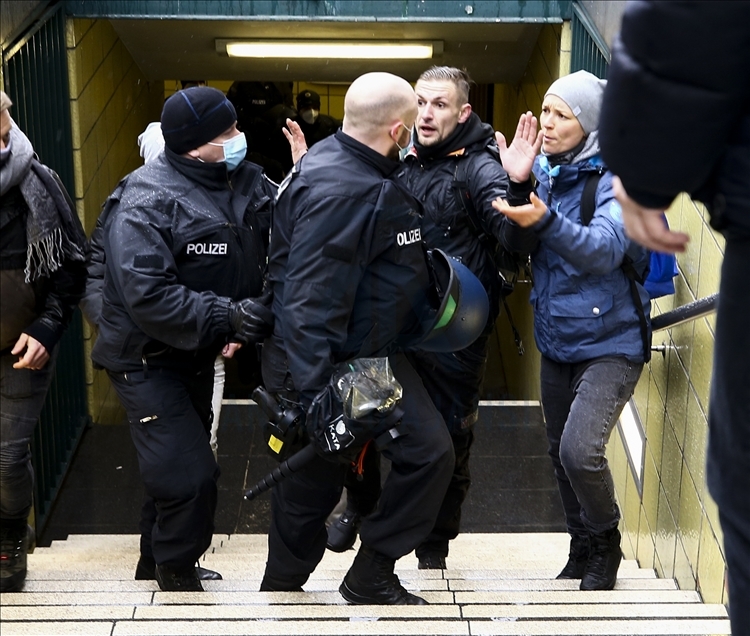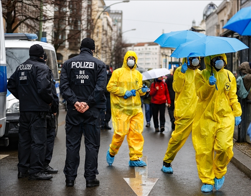 Almanya'da yeni tip koronavirüs (Kovid-19) salgını ile mücadele kapsamında alınan önlemlere karşı çıkan bir grup, başkent Berlin'de protesto düzenledi. Polis, "Querdenken" adlı bir grup tarafından düzenlenen protesto nedeniyle geniş güvenlik önlemi aldı. ( Abdulhamid Hoşbaş - Anadolu Ajansı )Abdulhamid Hoşbaş