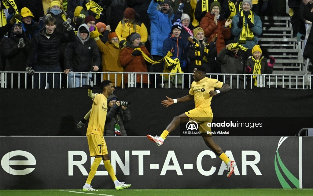 UEFA Avrupa Konferans Ligi D Grubu 3. hafta maçında Bodo/Glimt ile Beşiktaş takımları Norveç’in Bodo şehrindeki Aspmyra Stadı'nda karşı karşıya geldi. Karşılaşmada, Bodo/Glimt takımının futbolcusu Faris Pemi Moumbagna (sağda) attığı golün ardından sevinç yaşadı. ( Burak Akbulut - Anadolu Ajansı )Burak Akbulut