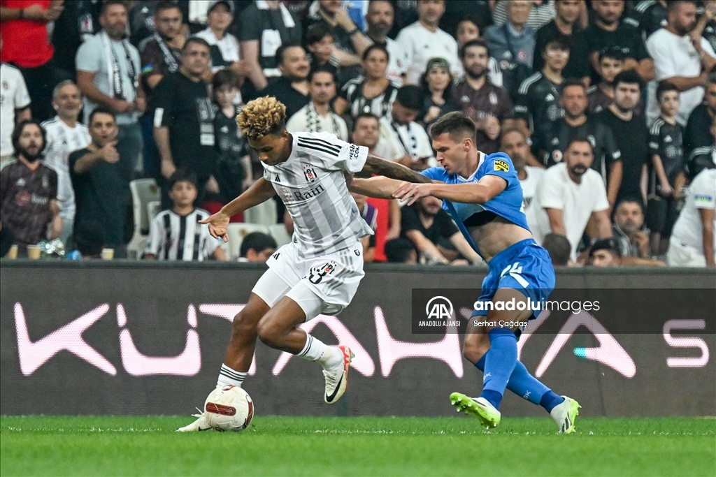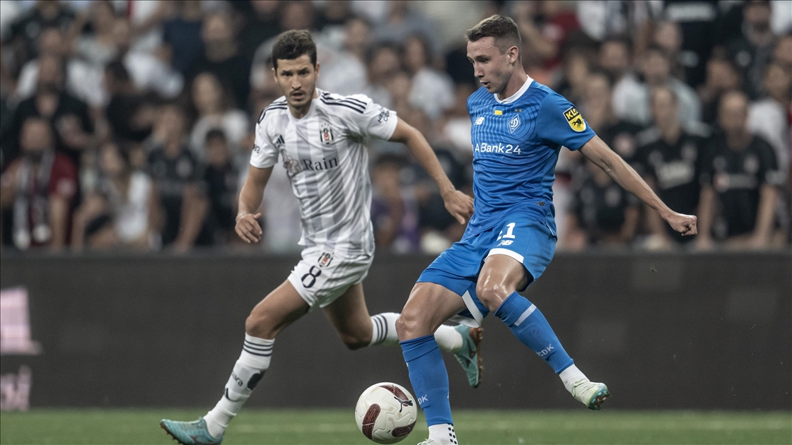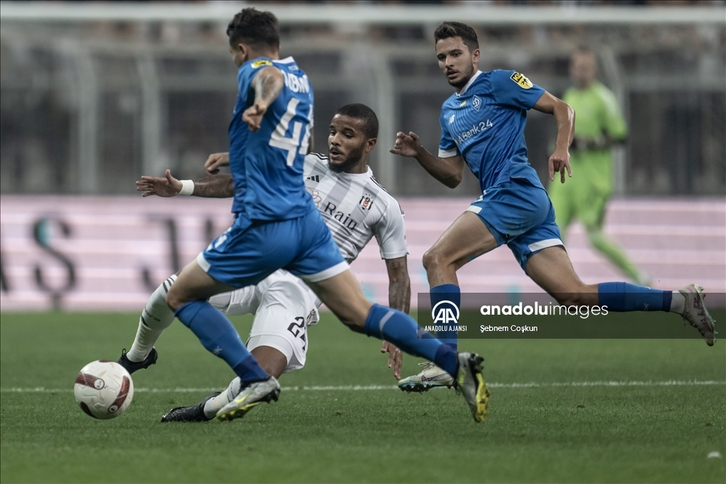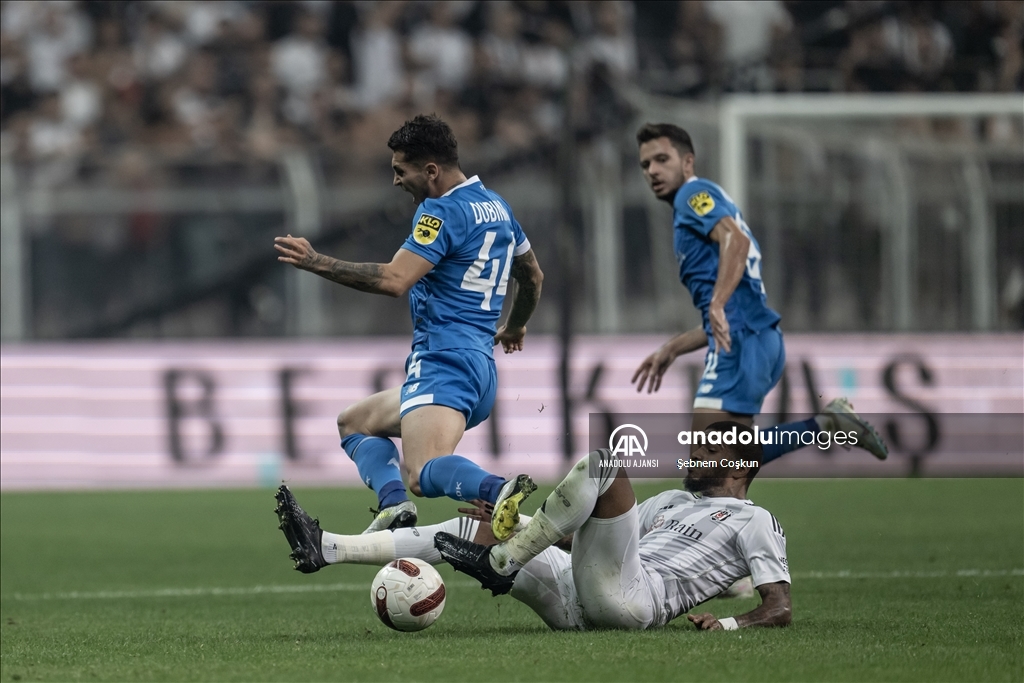 Beşiktaş, UEFA Avrupa Konferans Ligi play-off turu rövanş maçında Ukrayna'nın Dinamo Kiev takımıyla Beşiktaş Park'ta karşılaştı. Bir pozisyonda Beşiktaşlı Valentin Rosier (solda), rakibi Dinamo Kievli oyuncu Vladyslav Dubinchak (sağda) ile mücadele etti. ( Şebnem Coşkun - Anadolu Ajansı )Şebnem Coşkun