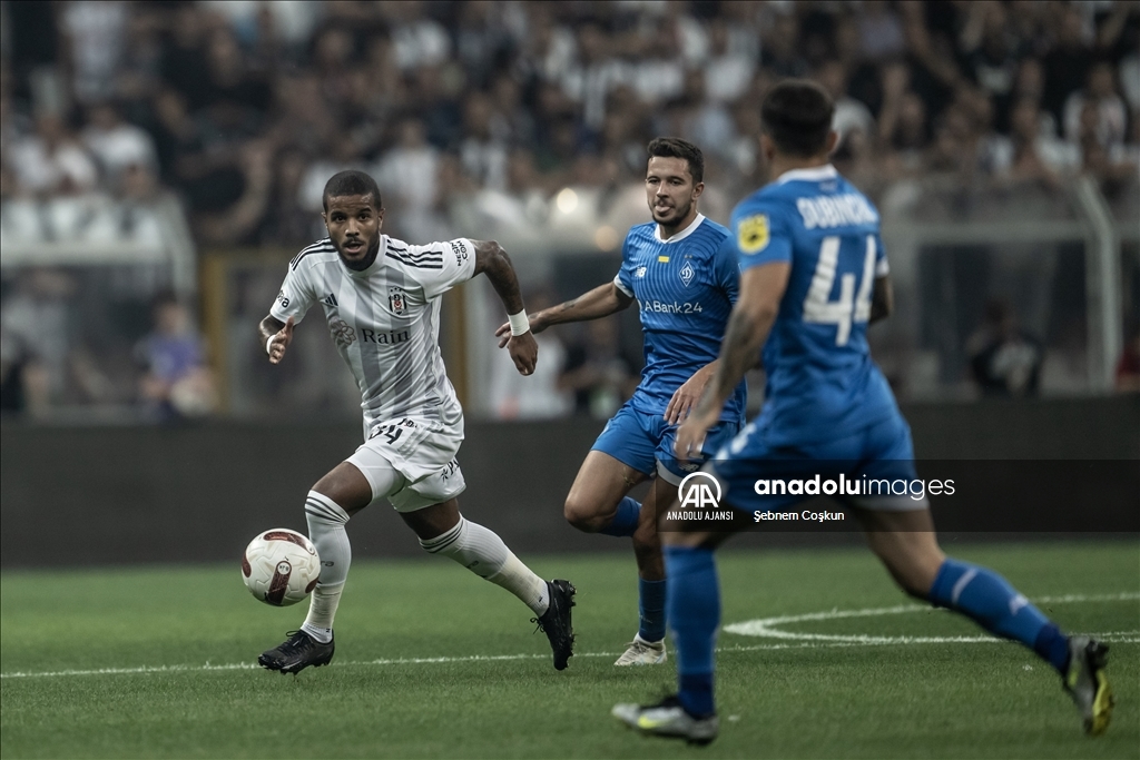 Beşiktaş, UEFA Avrupa Konferans Ligi play-off turu rövanş maçında Ukrayna'nın Dinamo Kiev takımıyla Beşiktaş Park'ta karşılaştı. Bir pozisyonda Beşiktaşlı Valentin Rosier (ortada), rakibi Dinamo Kievli oyuncu Vladyslav Dubinchak (önde) ile mücadele etti. ( Şebnem Coşkun - Anadolu Ajansı )Şebnem Coşkun