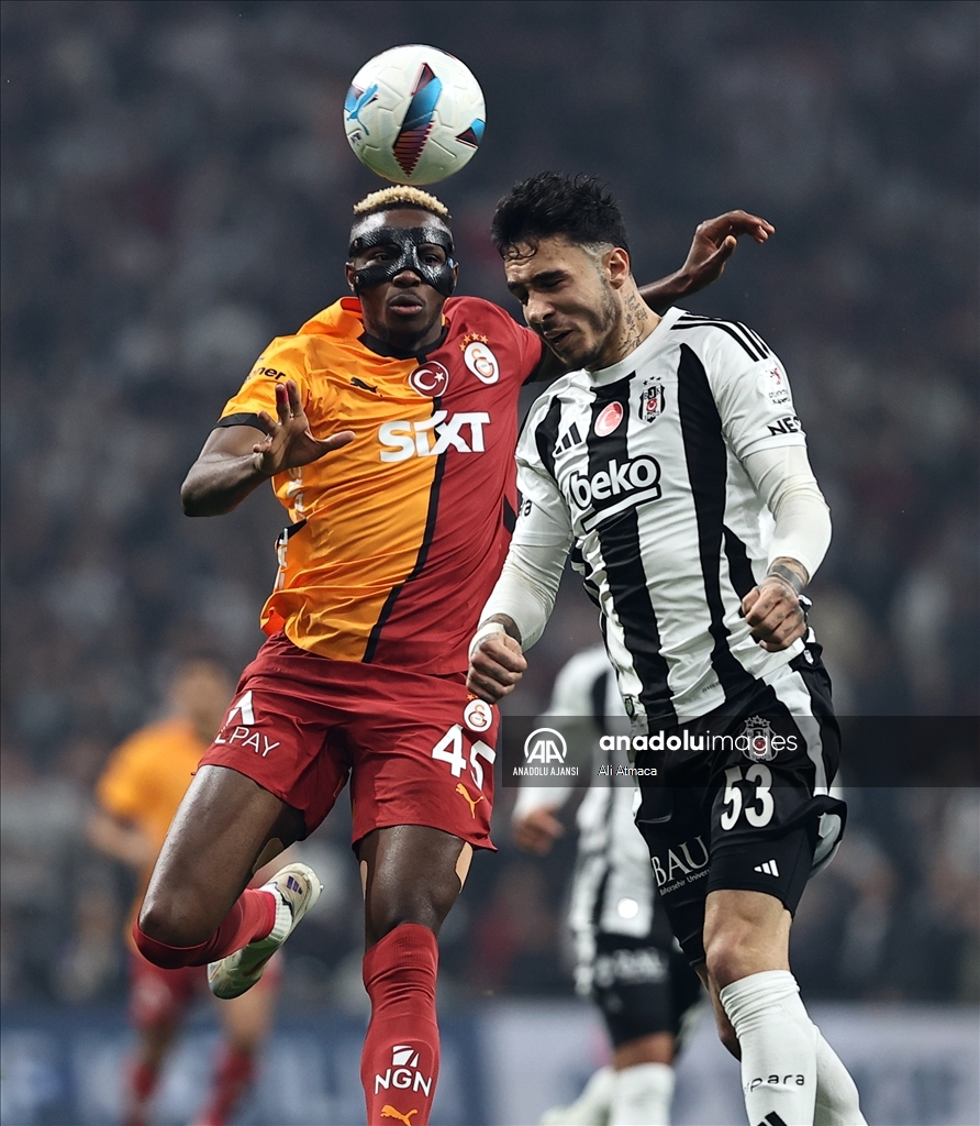 Bir pozisyonda Beşiktaş oyuncusu Emirhan Topçu (sağda) ile Galatasaray oyuncusu Osimhen (solda) mücadele etti. (Ali Atmaca - Anadolu Ajansı)Ali Atmaca