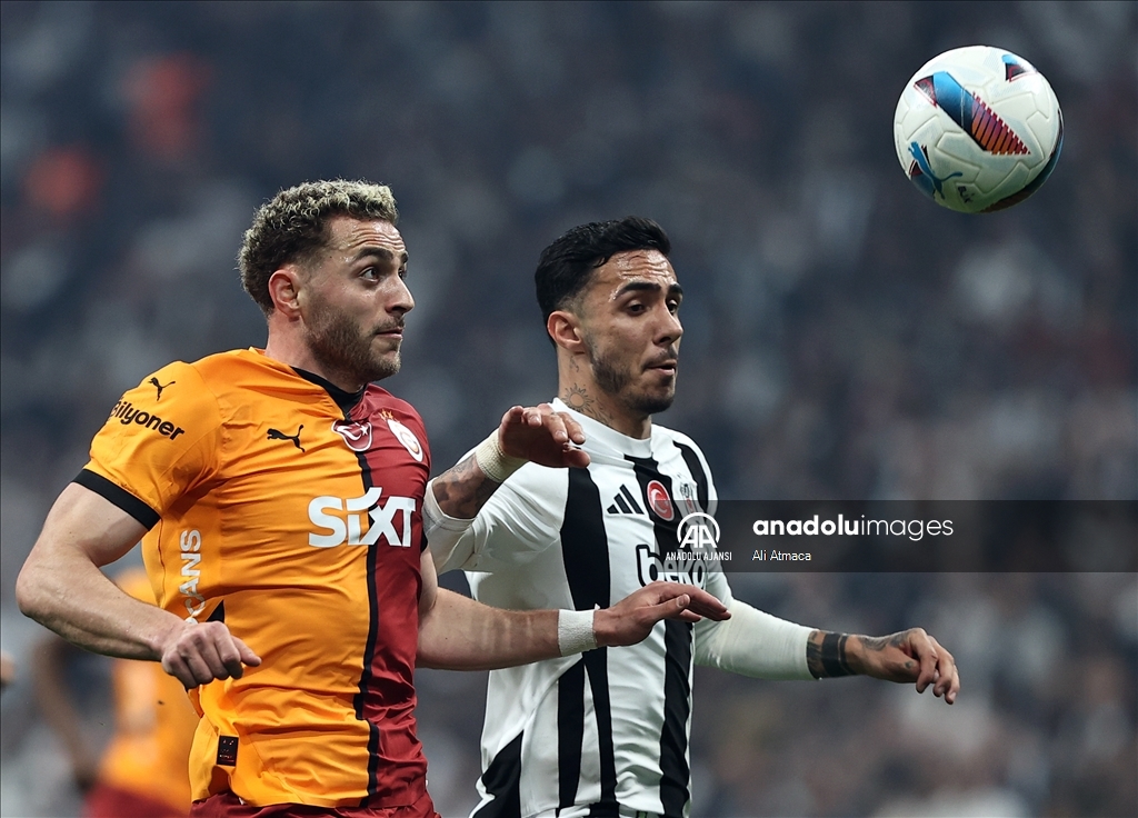 Bir pozisyonda Beşiktaş oyuncusu Emirhan Topçu (sağda) ile Galatasaray oyuncusu Barış Alper Yılmaz (solda) mücadele etti.Ali Atmaca