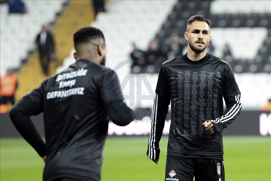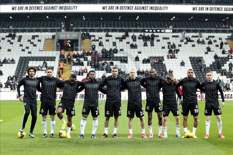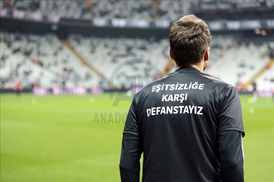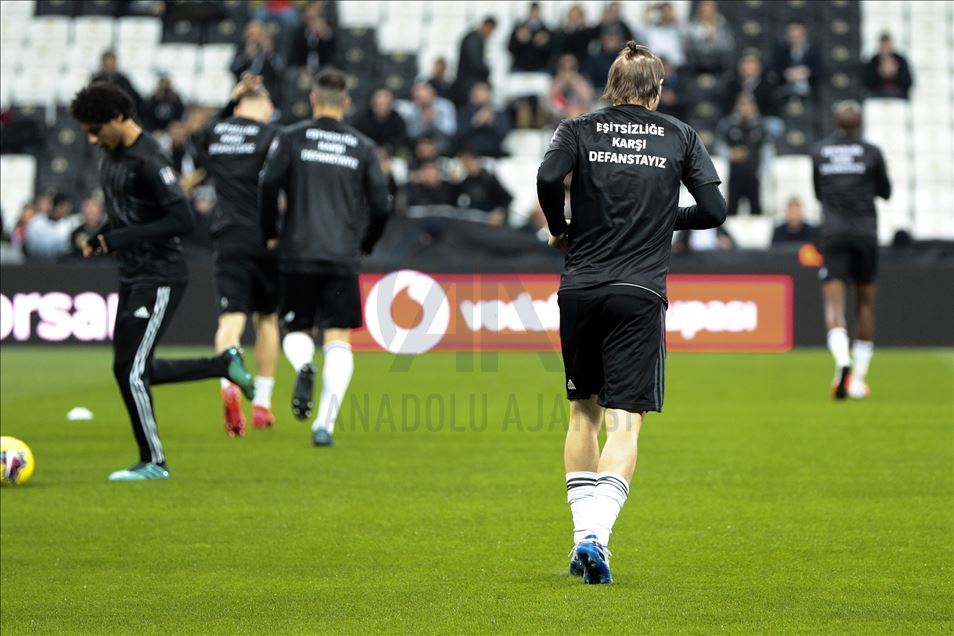 Beşiktaşlı oyuncular, Süper Lig'in 25. hafta maçında Vodafone Park'ta karşılaşacağı MKE Ankaragücü mücadelesi öncesi arkalarında "Eşitsizliğe Karşı Defanstayız" ve ön tarafında da bugüne kadar erkek şiddeti nedeniyle cinayete kurban edilen kadınların isimleri yazılı tişörtle çıktı. ( Serhat Çağdaş - Anadolu Ajansı )Serhat Çağdaş