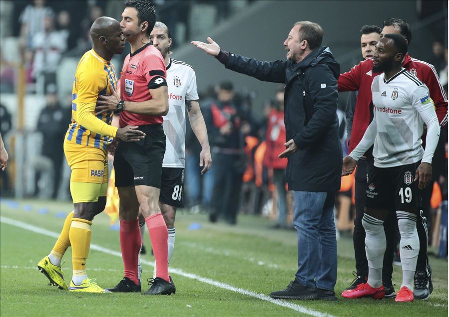 Beşiktaş, Süper Lig'in 25. hafta maçında MKE Ankaragücü ile Vodafone Park'ta karşılaştı. MKE Ankaragücü oyuncusu Dever Orgill (solda) ile Beşiktaş Teknik Direktörü Sergen Yalçın (sağ 2) arasında kısa süreli gerginlik yaşandı. ( Serhat Çağdaş - Anadolu Ajansı )Serhat Çağdaş