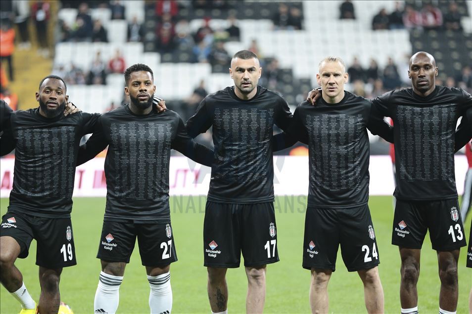 Beşiktaşlı oyuncular Burak Yılmaz, Vida, Atiba Hutchinson, Jeremain Lens Süper Lig'in 25. hafta maçında Vodafone Park'ta karşılaşacağı MKE Ankaragücü mücadelesi öncesi arkalarında "Eşitsizliğe Karşı Defanstayız" ve ön tarafında da bugüne kadar erkek şiddeti nedeniyle cinayete kurban edilen kadınların isimleri yazılı tişörtle çıktı. ( Serhat Çağdaş - Anadolu Ajansı )Serhat Çağdaş