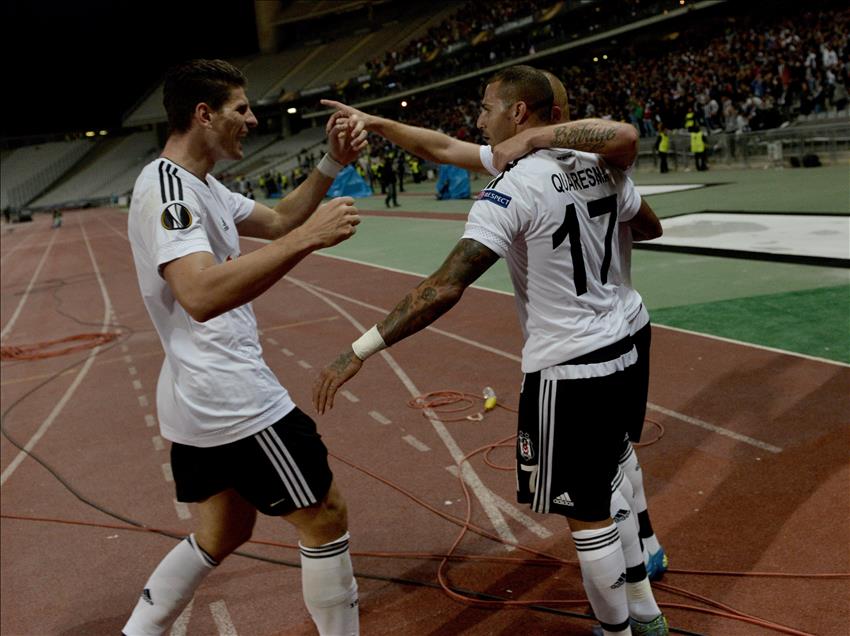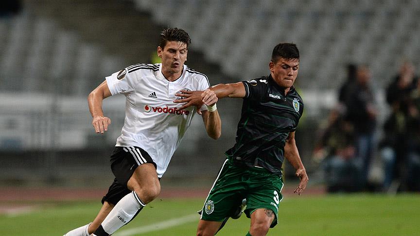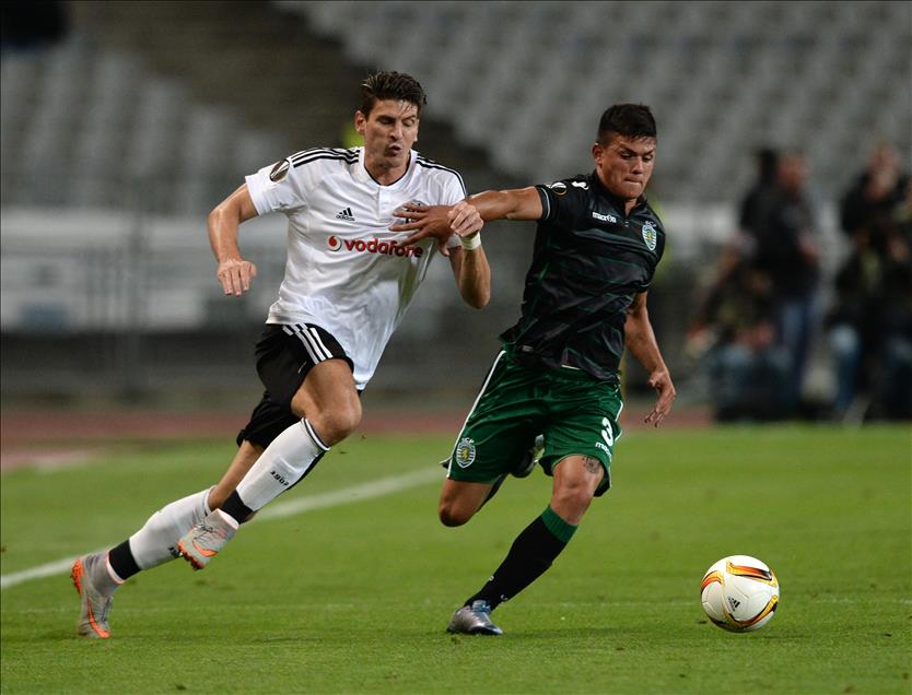 UEFA Avrupa Ligi H Grubu'nda Beşiktaş, Portekiz'in Sporting Lizbon takımıyla Atatürk Olimpiyat Stadı'nda karşılaştı. Bir pozisyonda Beşiktaşlı Mario Gomez Sporting Lizbonlu Jonathan Silva ile mücadele etti. (Metin Pala - Anadolu Ajansı)Metin Pala