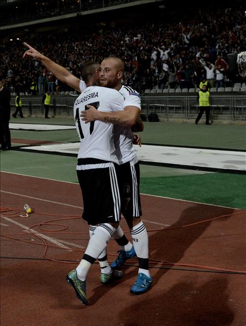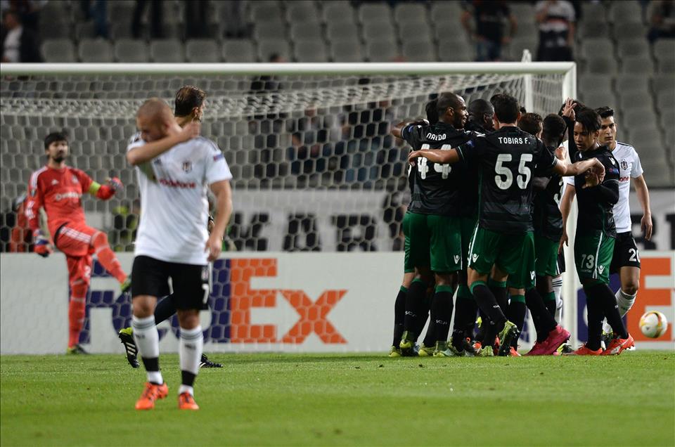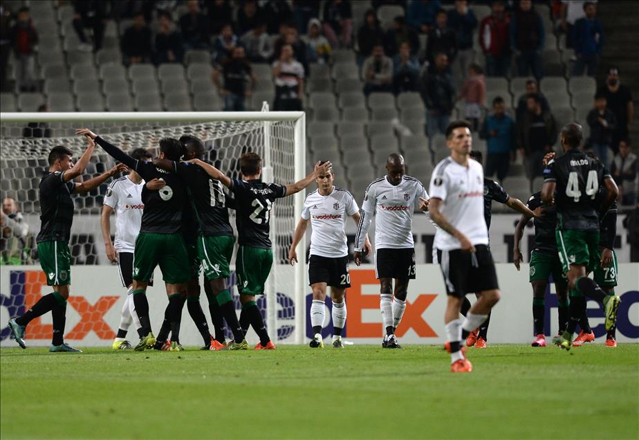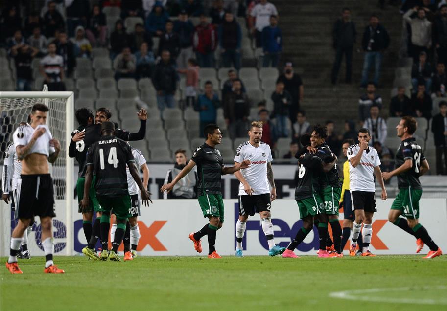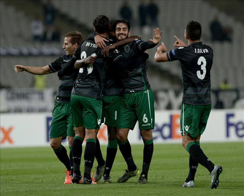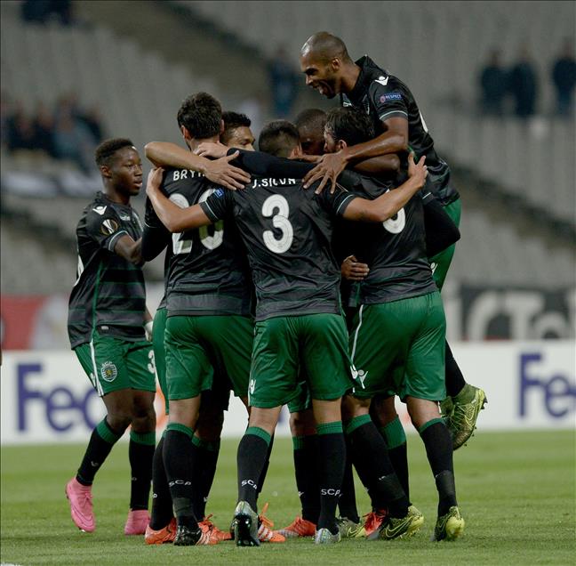 UEFA Avrupa Ligi H Grubu'nda Beşiktaş, Portekiz'in Sporting Lizbon takımıyla Atatürk Olimpiyat Stadı'nda karşı karşıya geldi. Sporting Lizbonlu futbolcular ilk golün ardından sevinç yaşadı. (Salih Zeki Fazlıoğlu - Anadolu Ajansı)Salih Zeki Fazlıoğlu